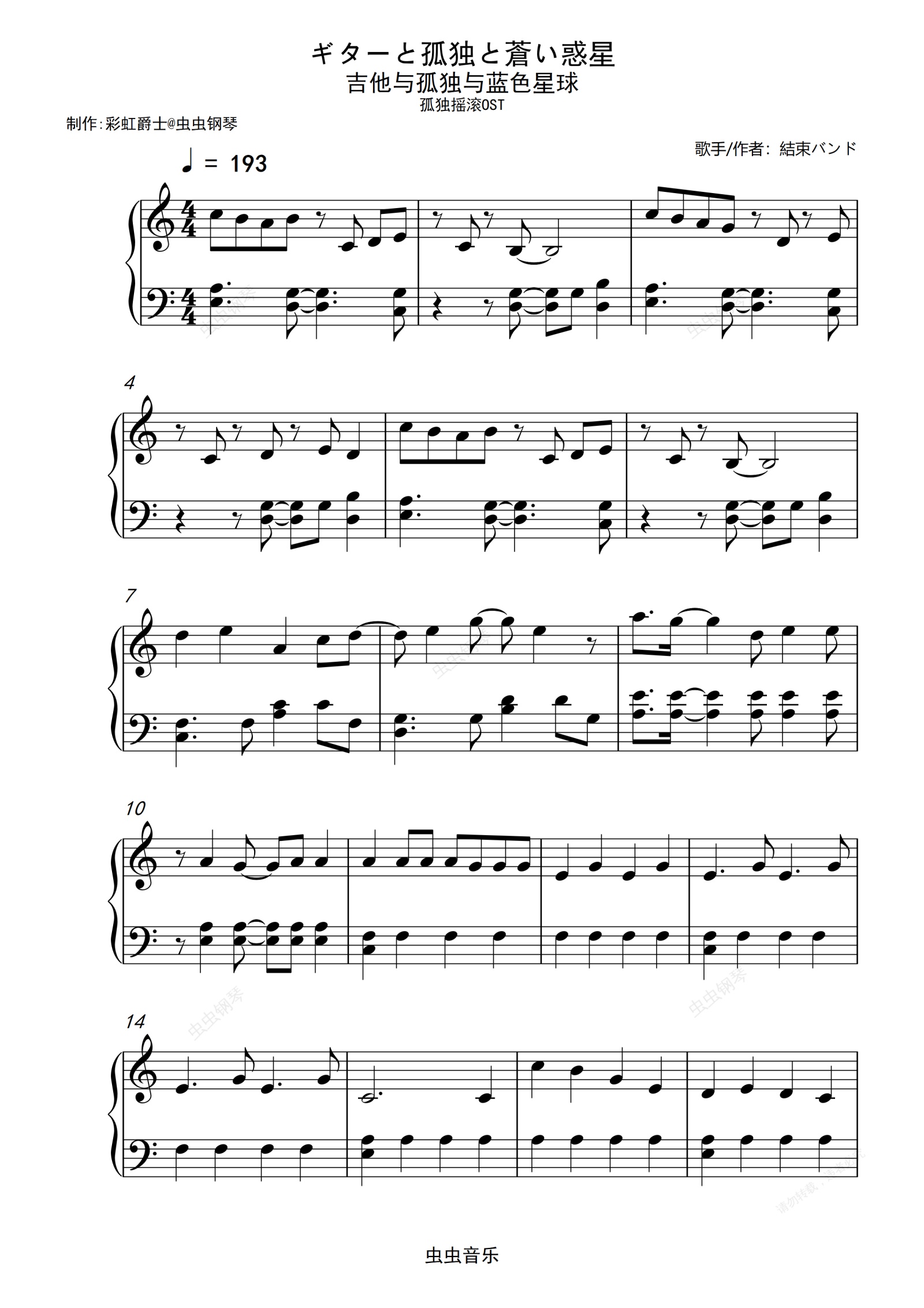 钢琴谱:ギターと孤独と蒼い惑星-吉他与孤独与蓝色星球-孤独摇滚OST