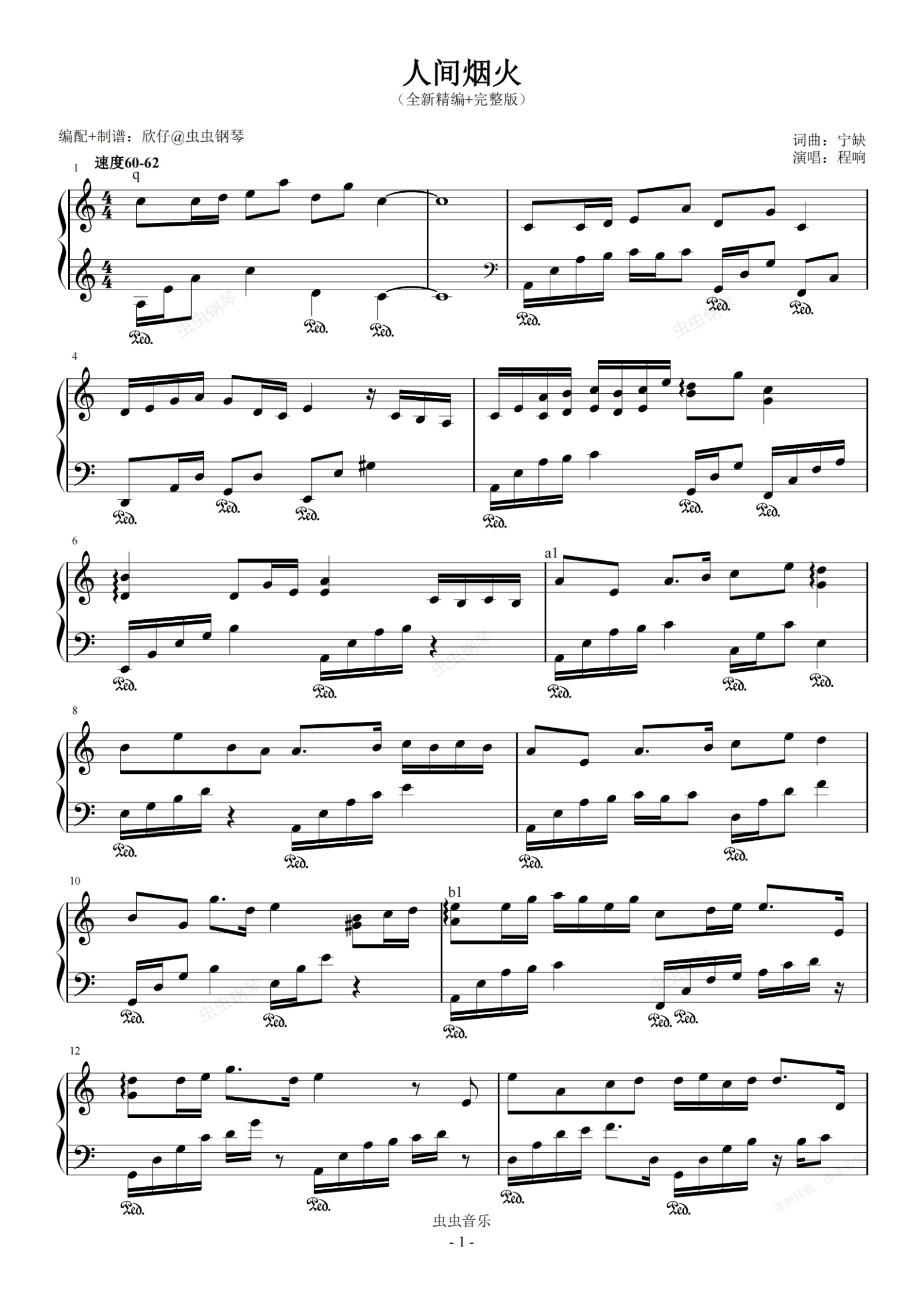 钢琴谱:程响-C《人间烟火》(全新精编+完整版)