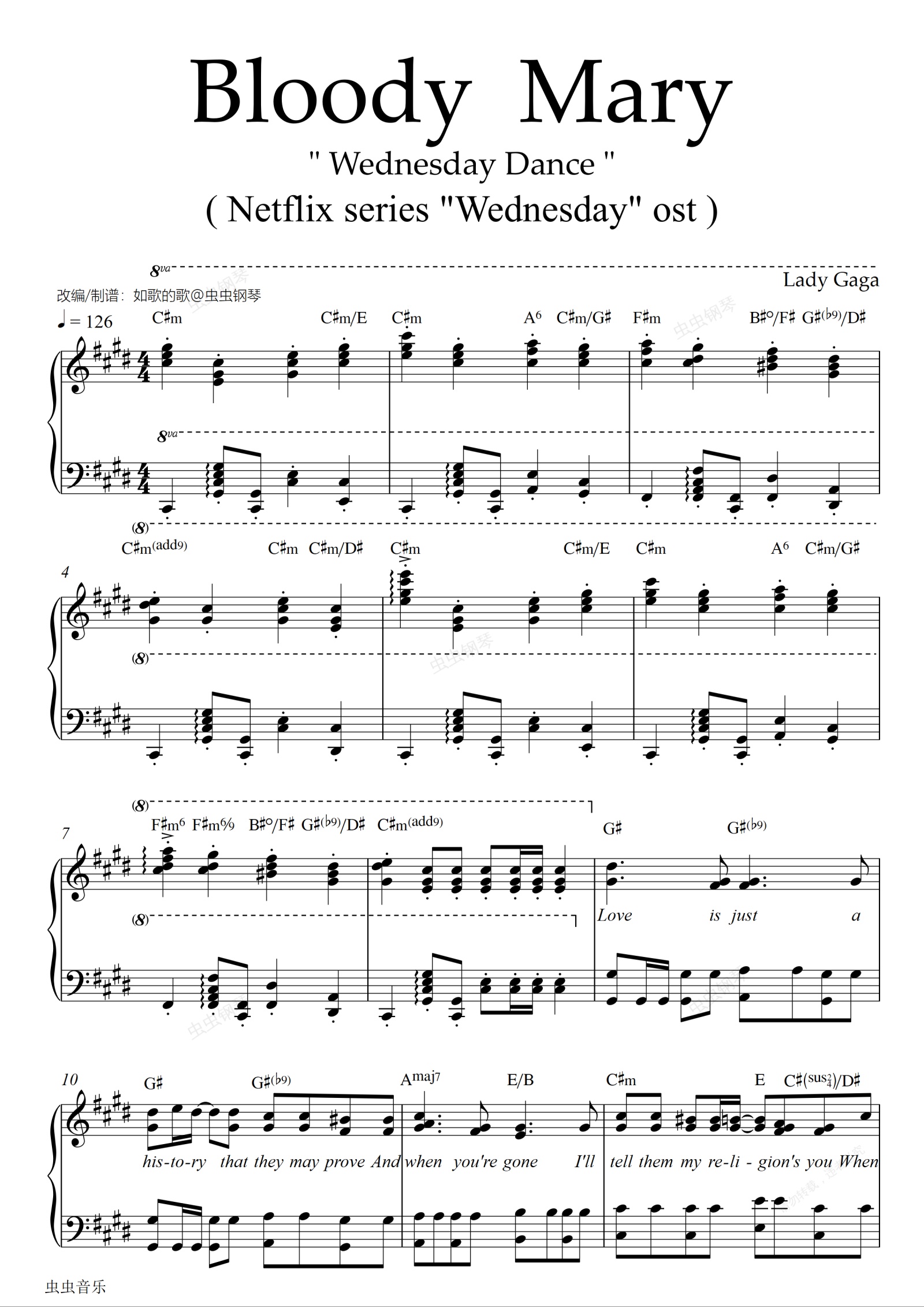 钢琴谱:Bloody Mary-Wednesday Dance星期三僵尸舞 "Wednesday" ost