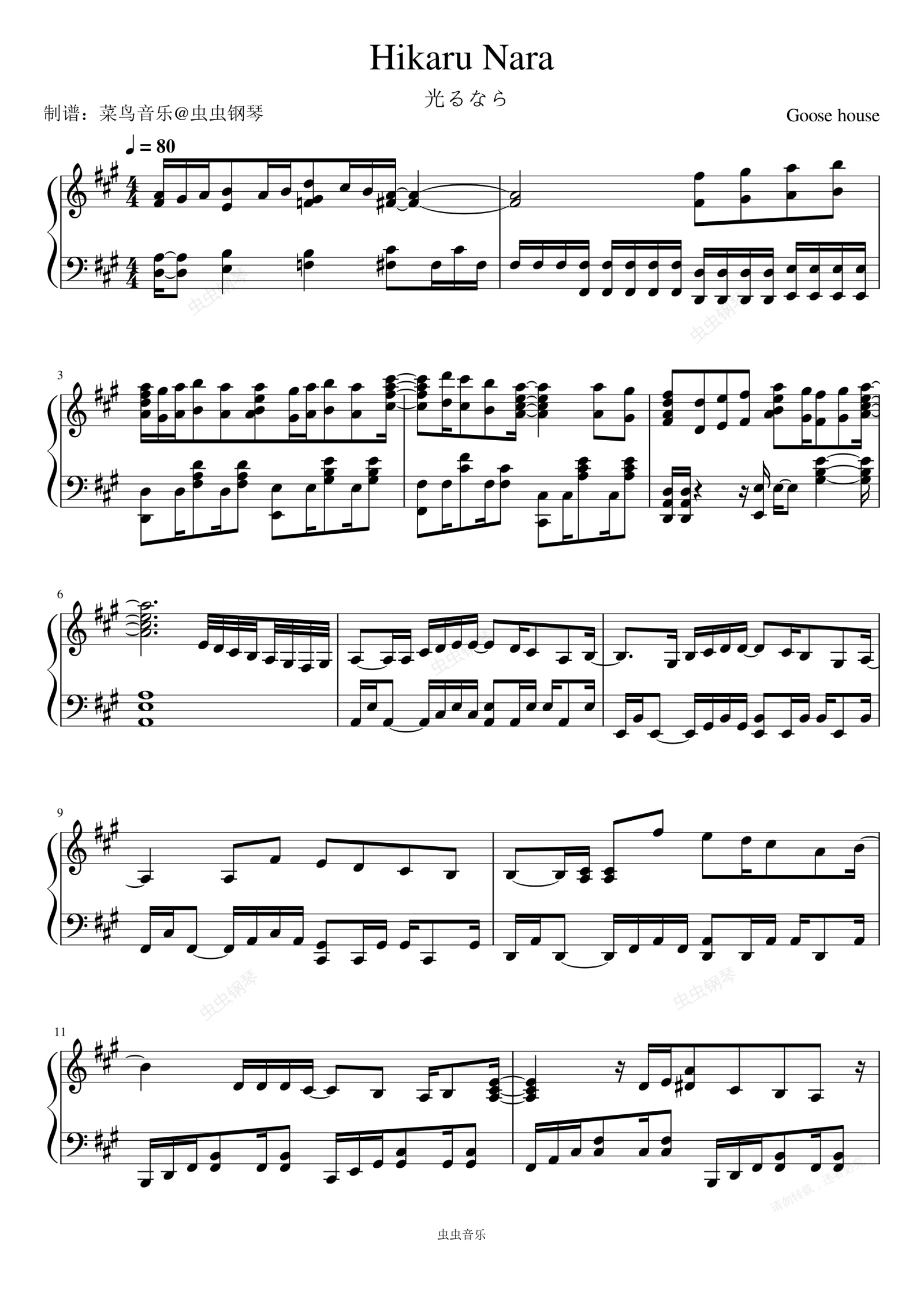 钢琴谱:光るなら/若能绽放光芒(《四月是你的谎言》OP)