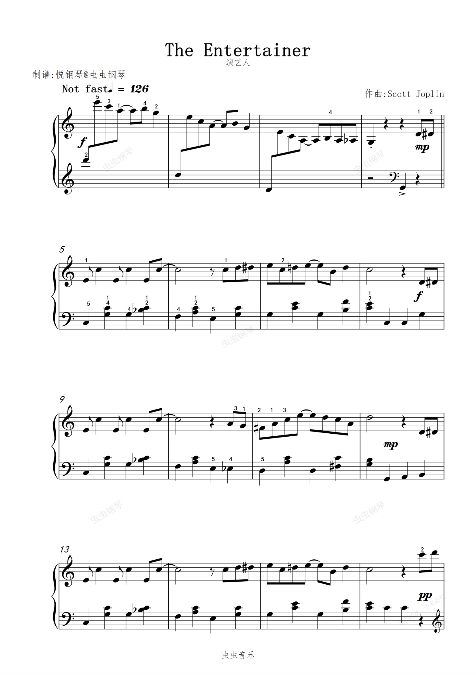 钢琴谱:演艺人//The Entertainer【幽默小曲】