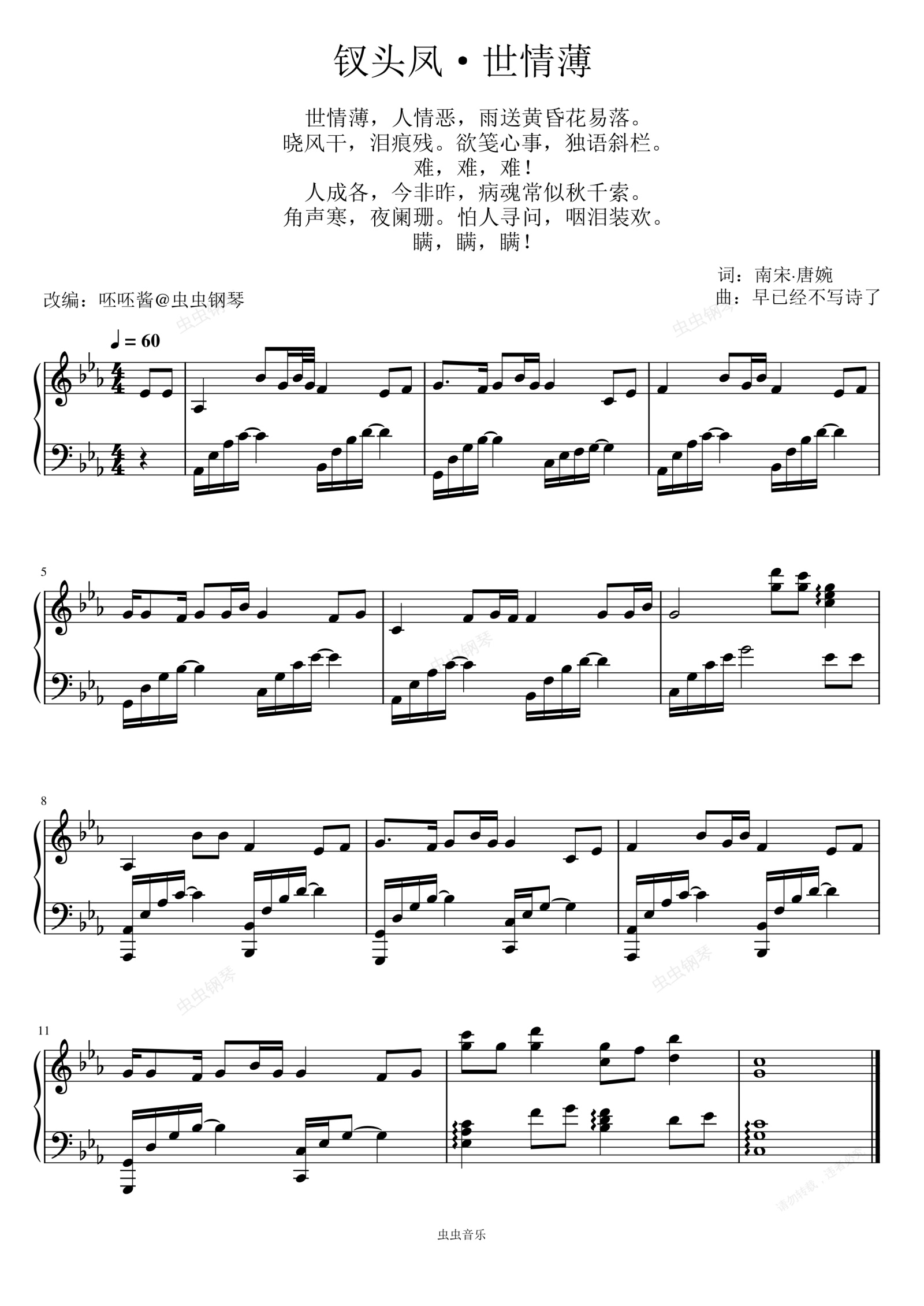 钢琴谱:钗头凤·世情薄【独奏改编版】-早已经不写诗了