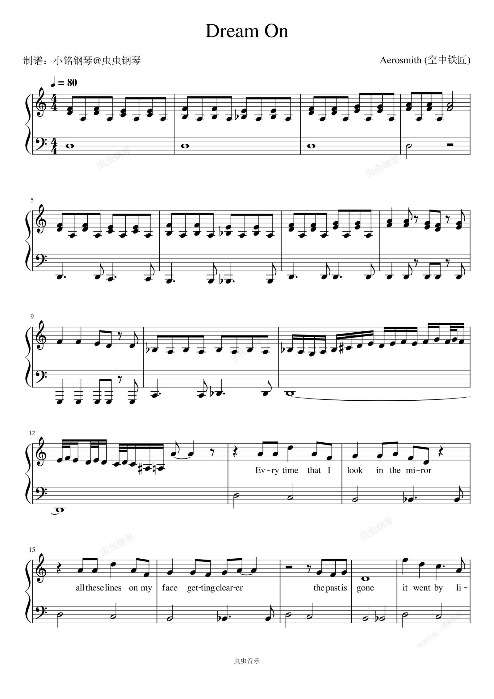 钢琴谱:Dream On (Album Version|Clean) - Aerosmith (空中铁匠)