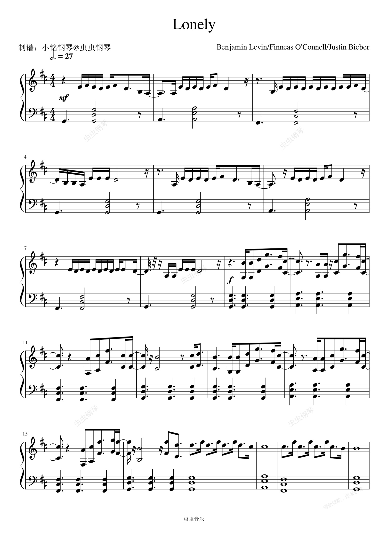 钢琴谱:Lonely (Explicit) - Justin Bieber (贾斯汀·比伯)/benny blanco