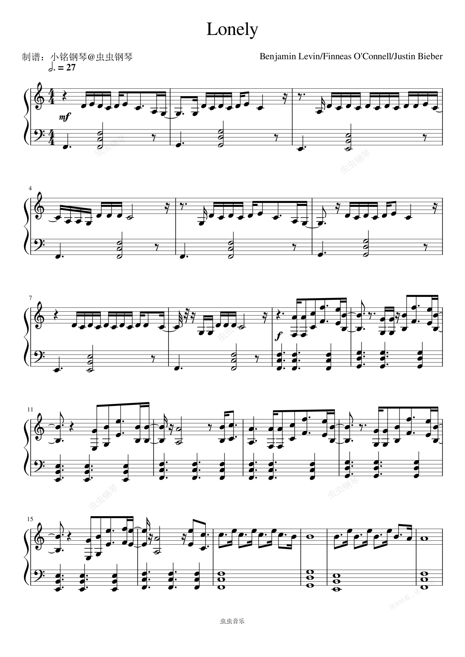 钢琴谱:Lonely (Explicit) - Justin Bieber (贾斯汀·比伯)/benny blanco