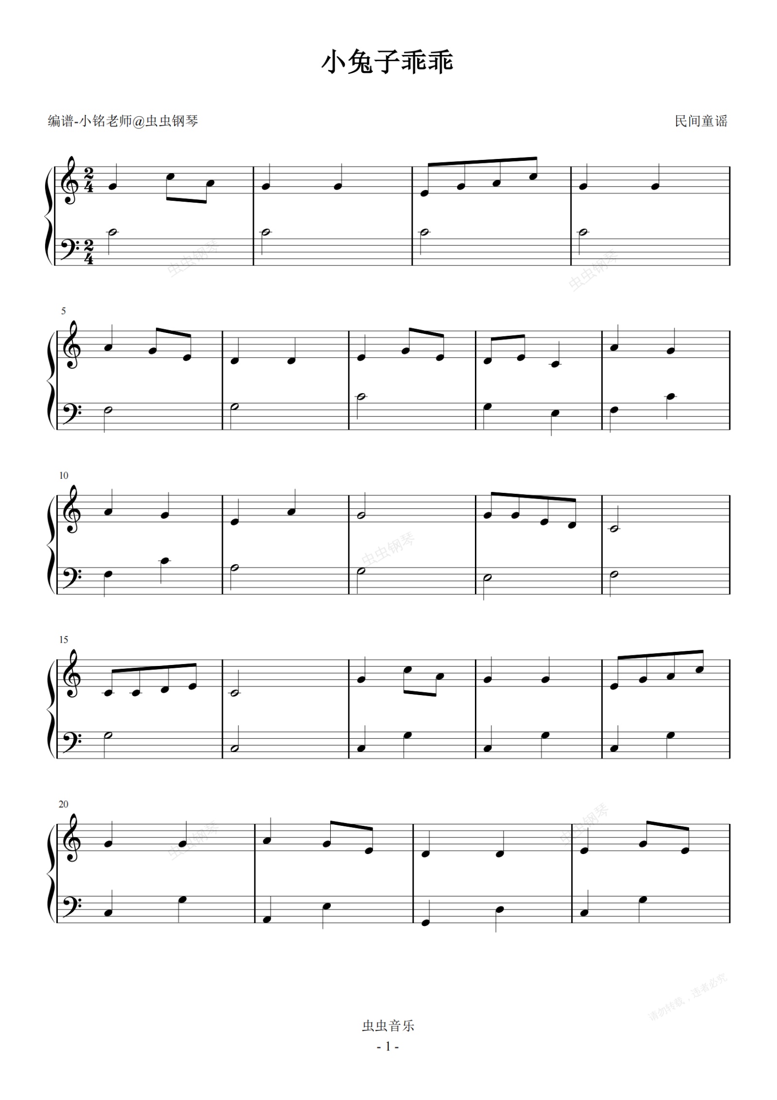 钢琴谱:小兔子乖乖 【快乐学儿歌 小汤3】