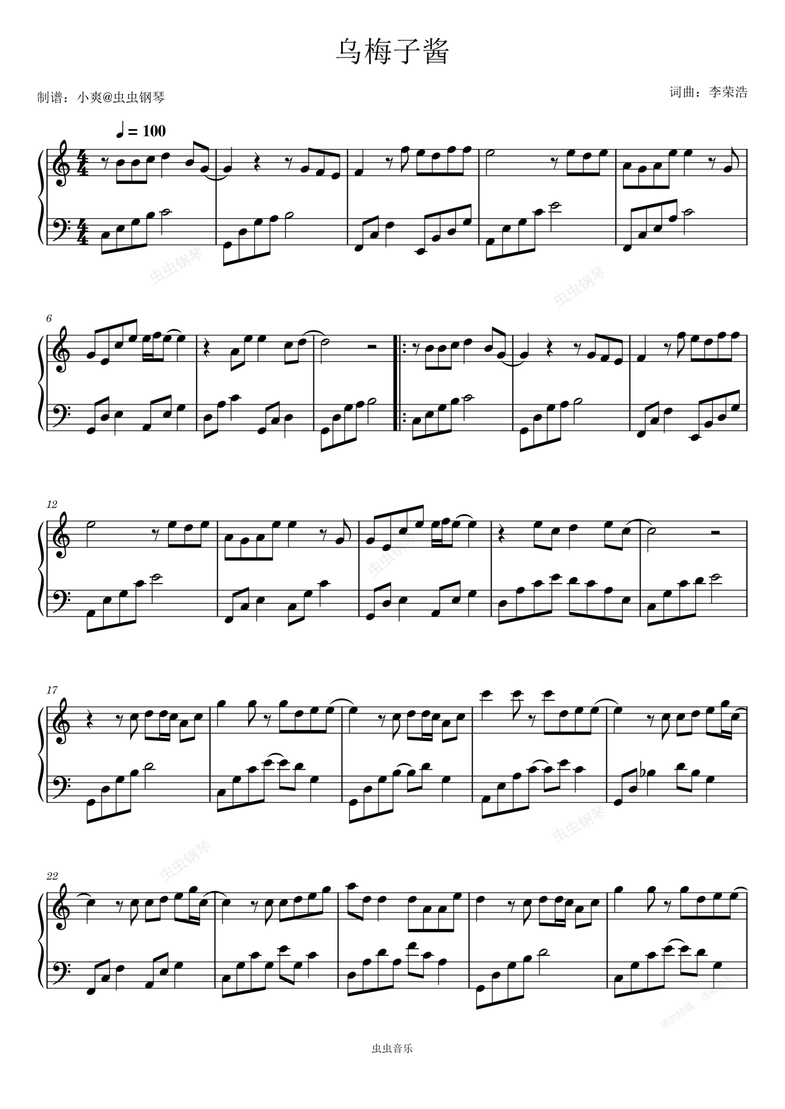 钢琴谱:乌梅子酱