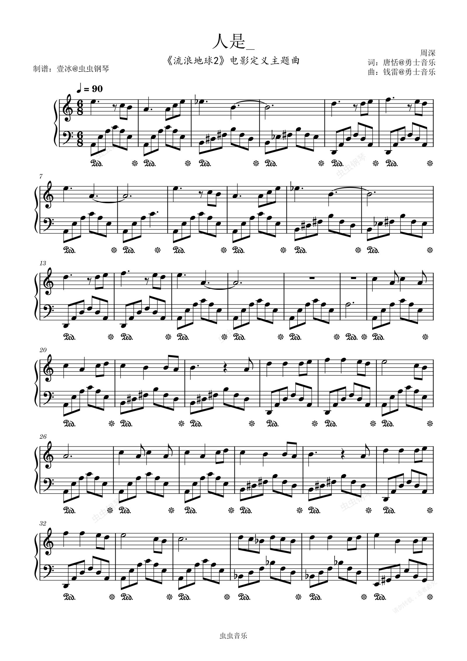 钢琴谱:人是_//《流浪地球2》电影定义主题曲-原调