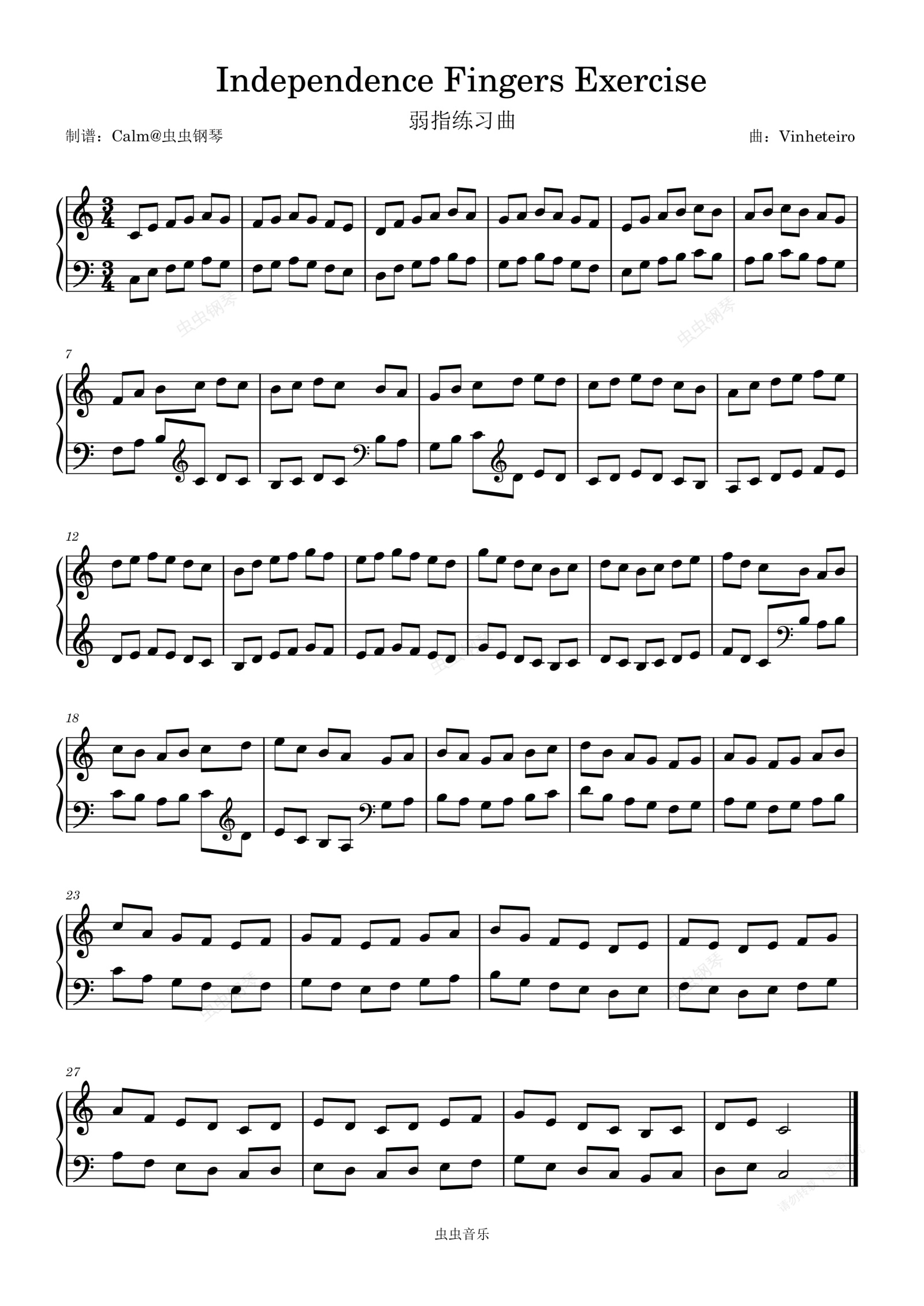 钢琴谱:V叔钢琴课-M6A1-弱指练习曲 - Independence Fingers Exercise