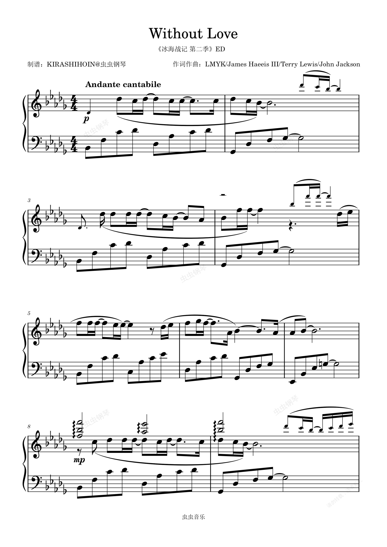 钢琴谱:Without Love(《冰海战记 第二季》ED/片尾曲)- LMYK