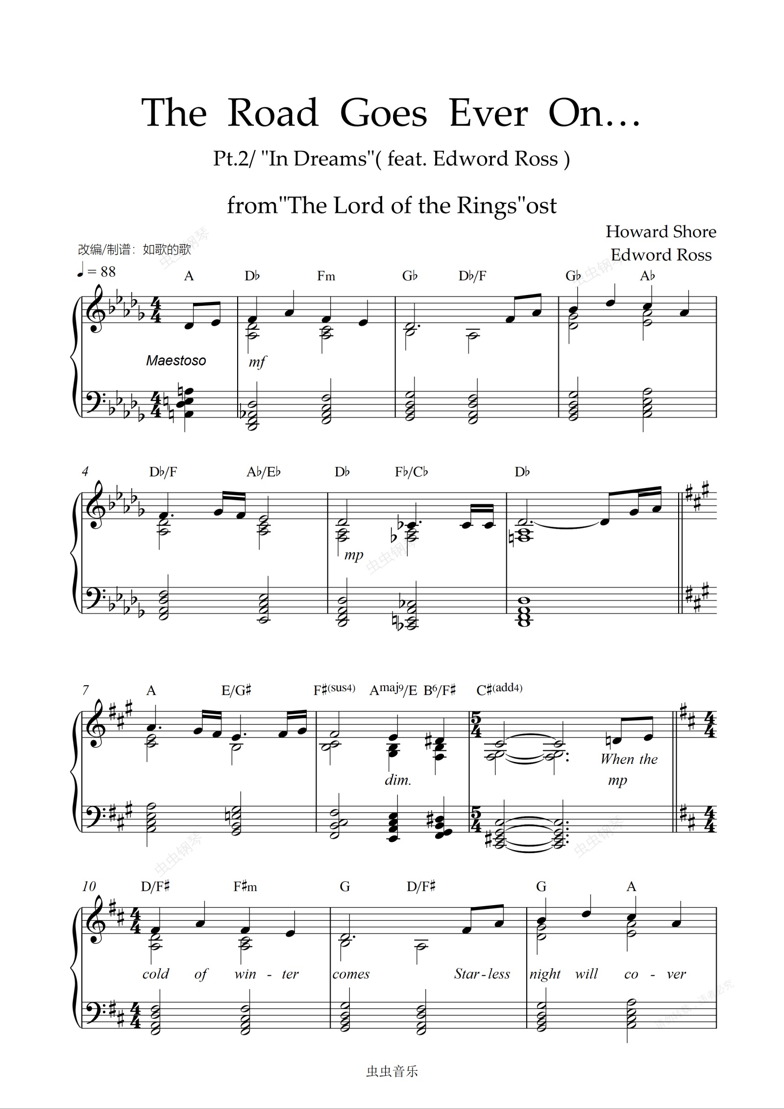 钢琴谱:The Road Goes Ever On-"In Dreams"指环王The Lord of the Rings ost