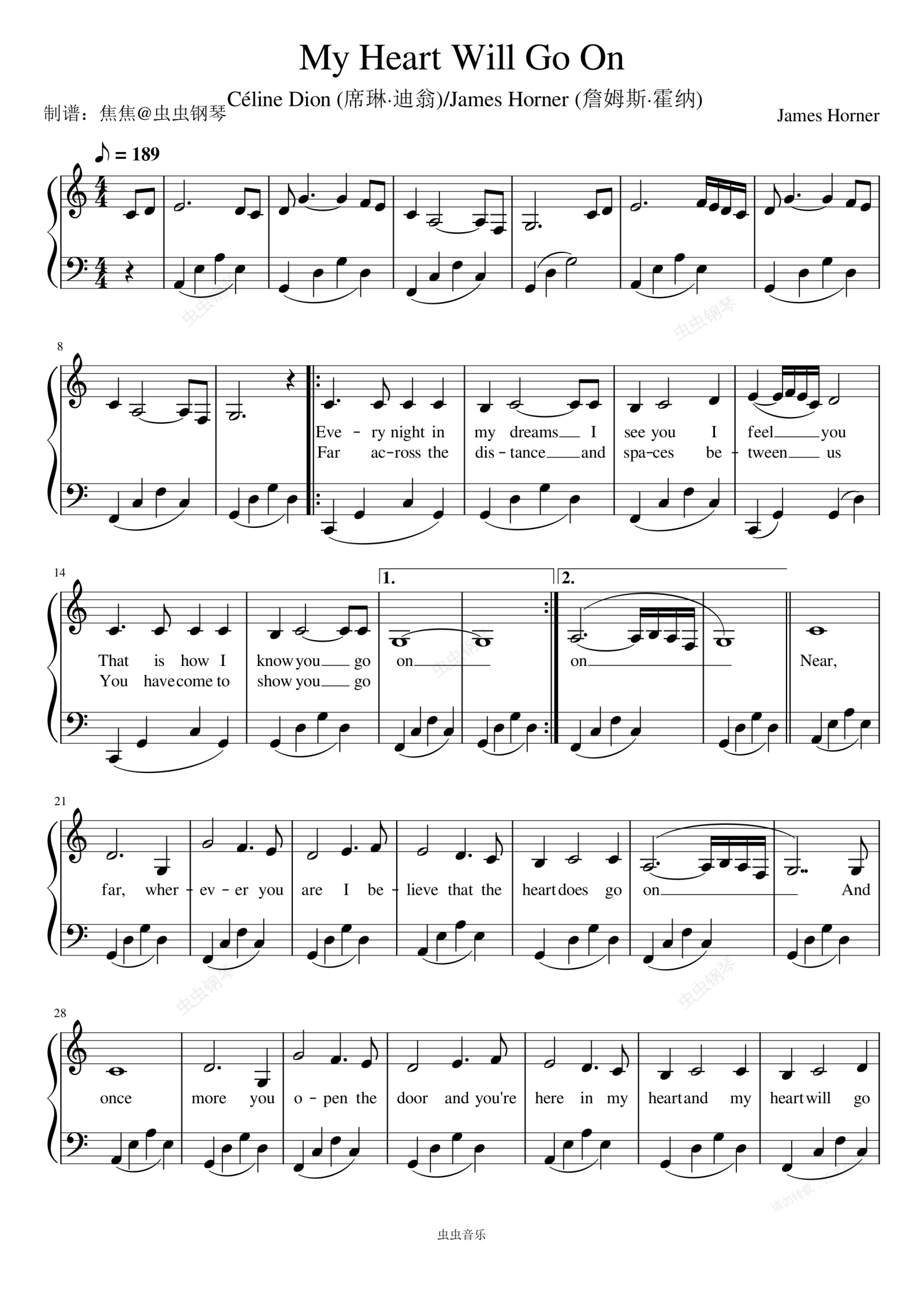 钢琴谱:My Heart Will Go On(我心永恒)—泰坦尼克号主题曲