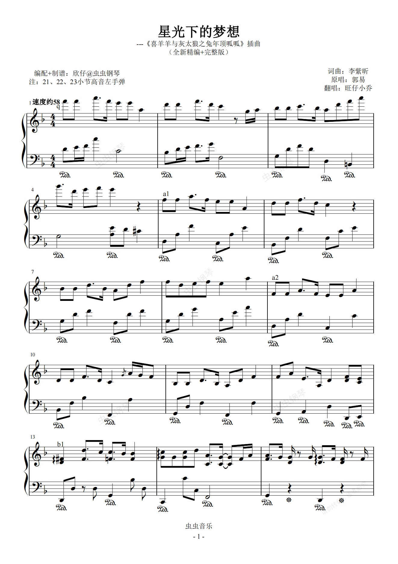 钢琴谱:旺仔小乔-F《星光下的梦想》(全新精编+完整版)