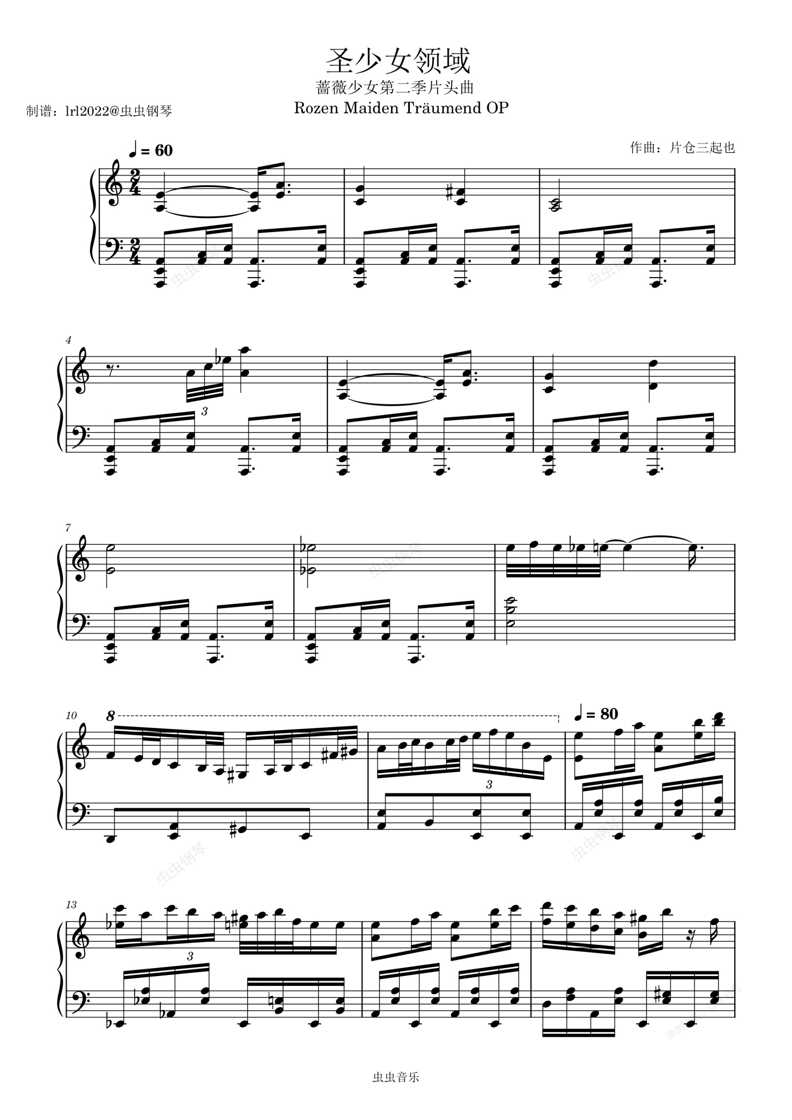 钢琴谱:圣少女领域-蔷薇少女第二季片头曲-Rozen Maiden Träumend OP
