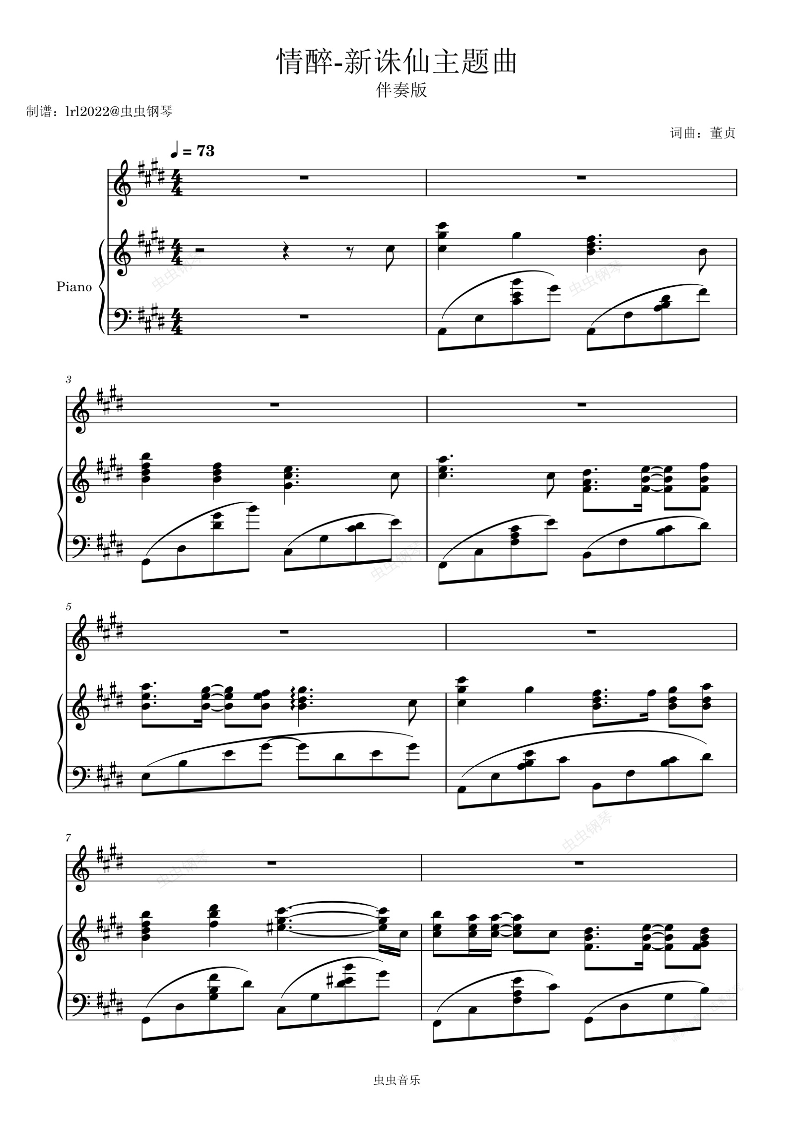 钢琴谱:情醉-弹唱伴奏版-新诛仙主题曲