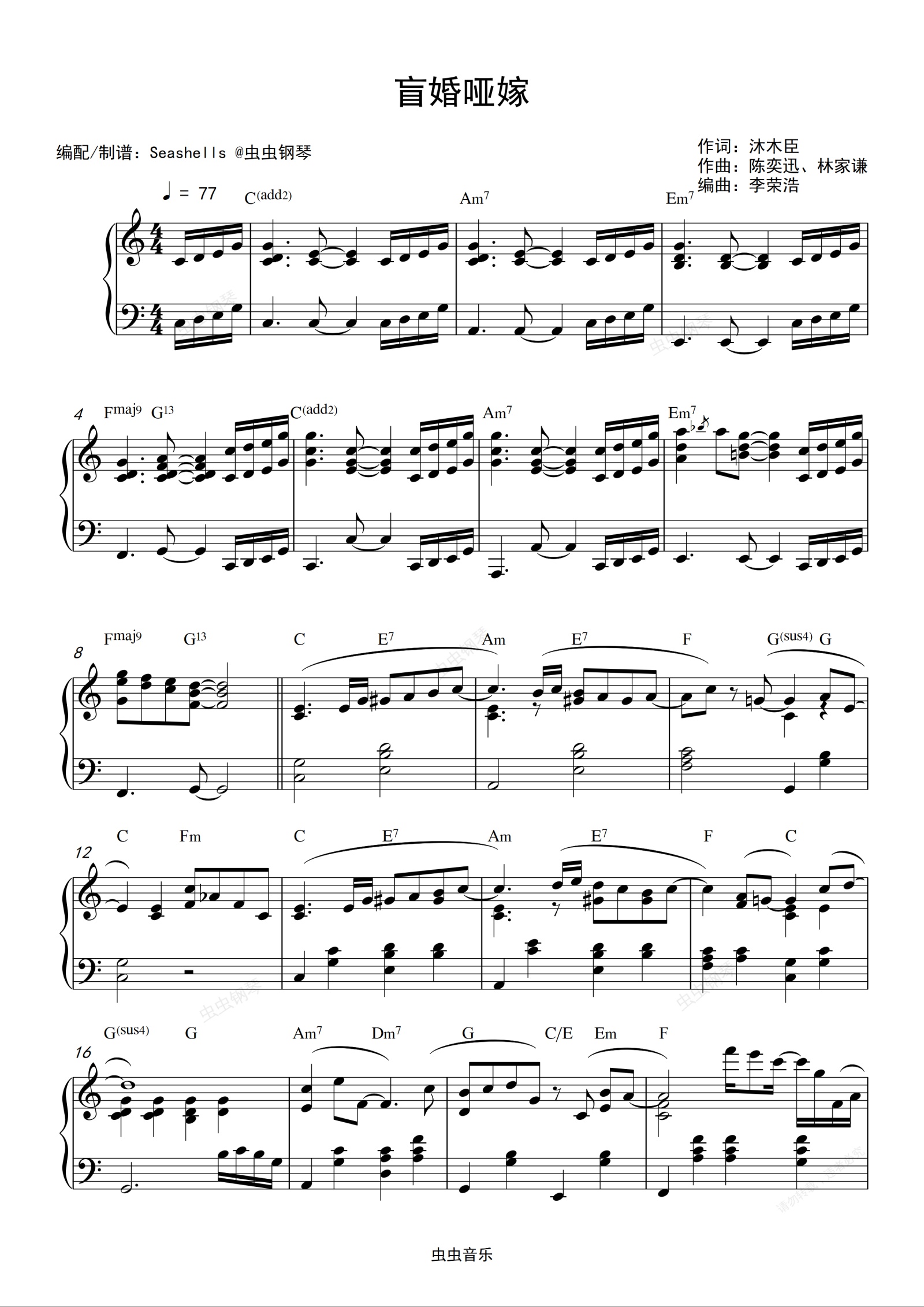 钢琴谱:陈奕迅-《盲婚哑嫁》精编钢琴独奏 C大调
