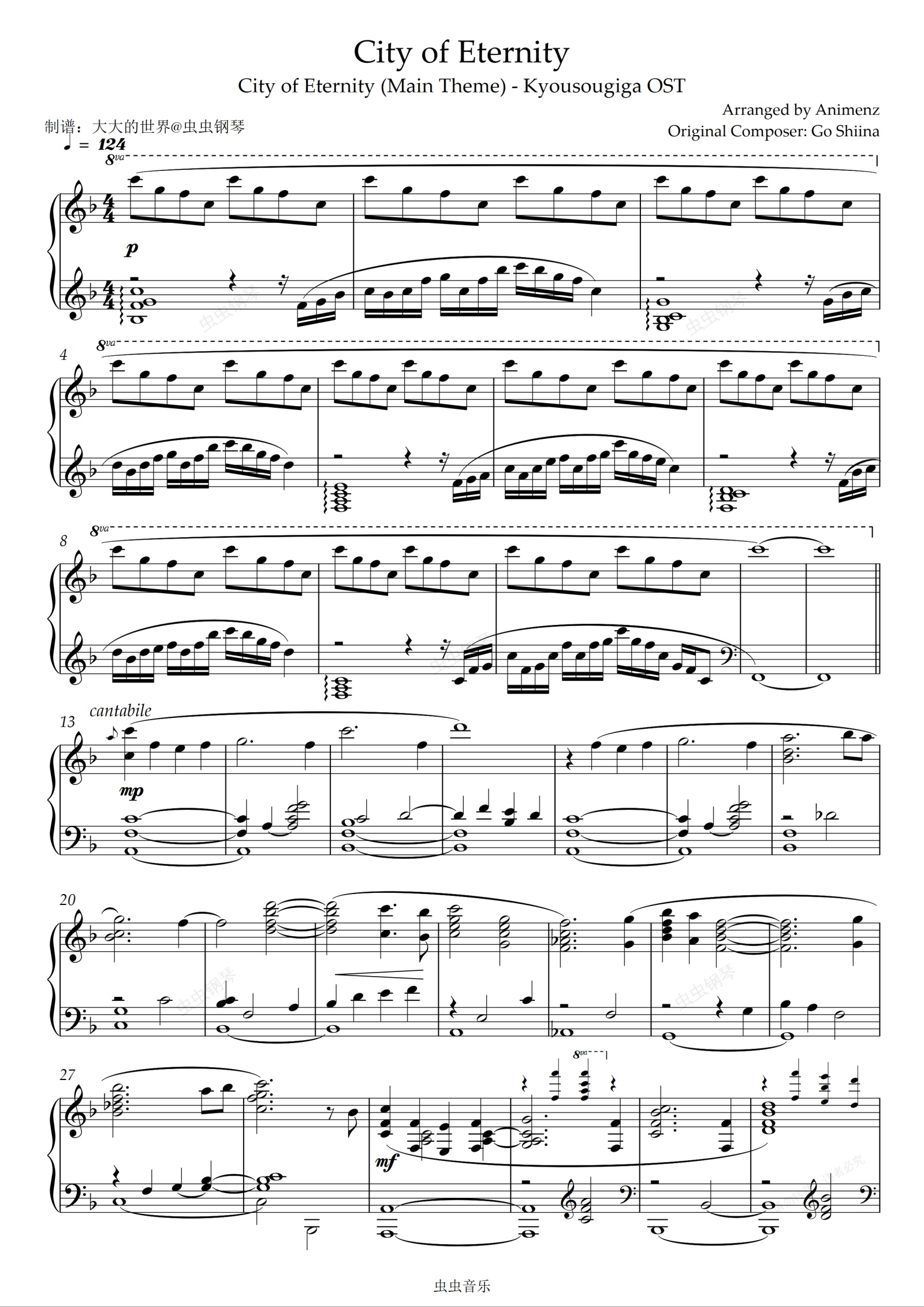 钢琴谱:【Animenz】City of Eternity (Main Theme) - Kyousougiga OST