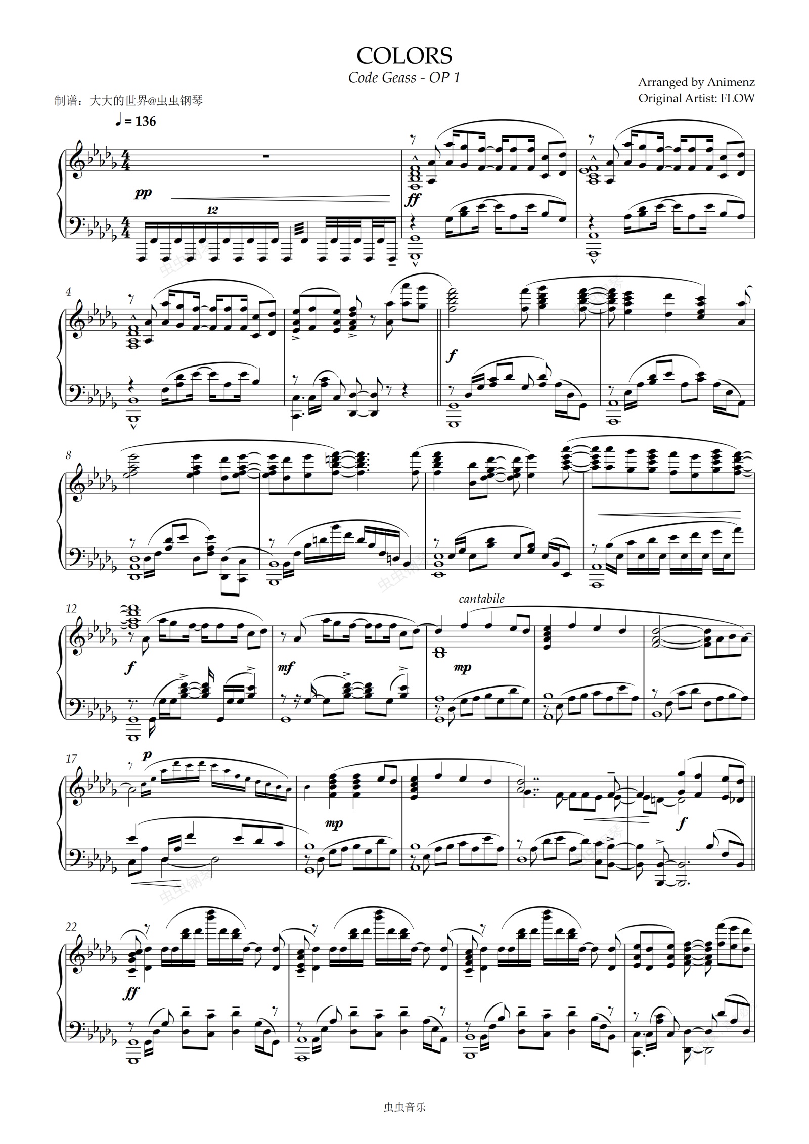 钢琴谱:【Animenz】COLORS - Code Geass OP1 叛逆的鲁鲁修