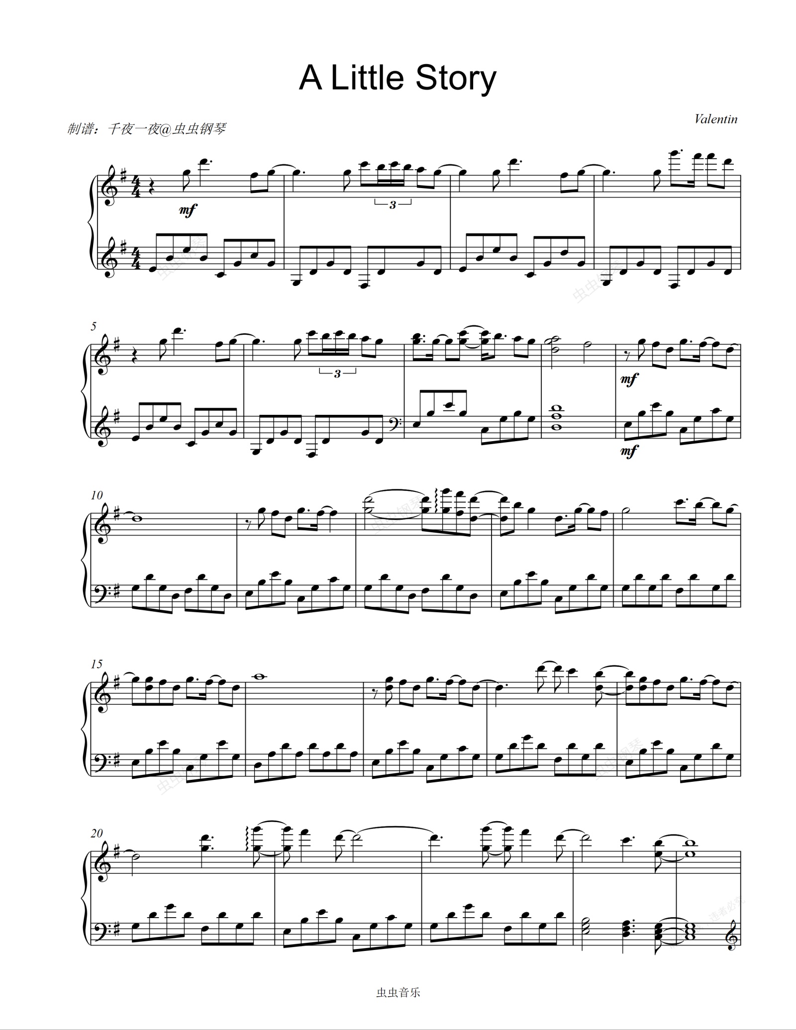 钢琴谱:A Little Story 钢琴独奏版 Valentin