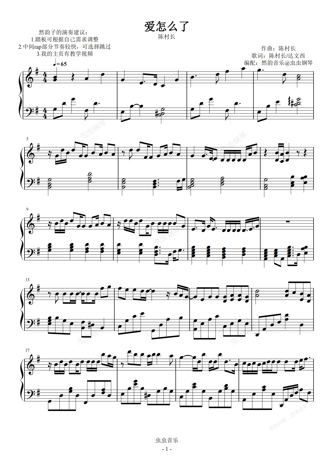 钢琴谱:【原调】爱怎么了-陈村长 钢琴极限还原