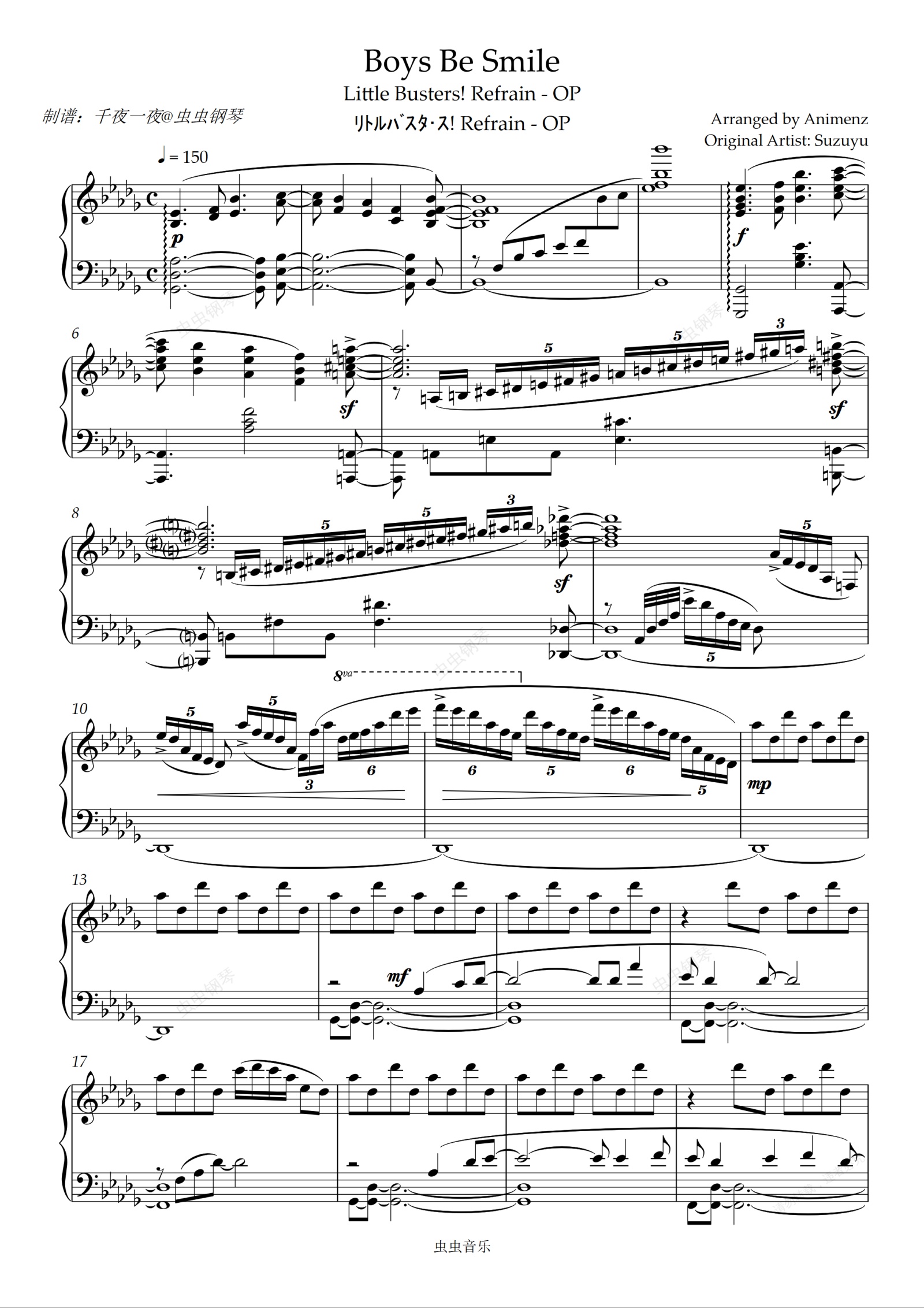 钢琴谱:【Animenz版】Boys be Smile - Little Busters Refrain