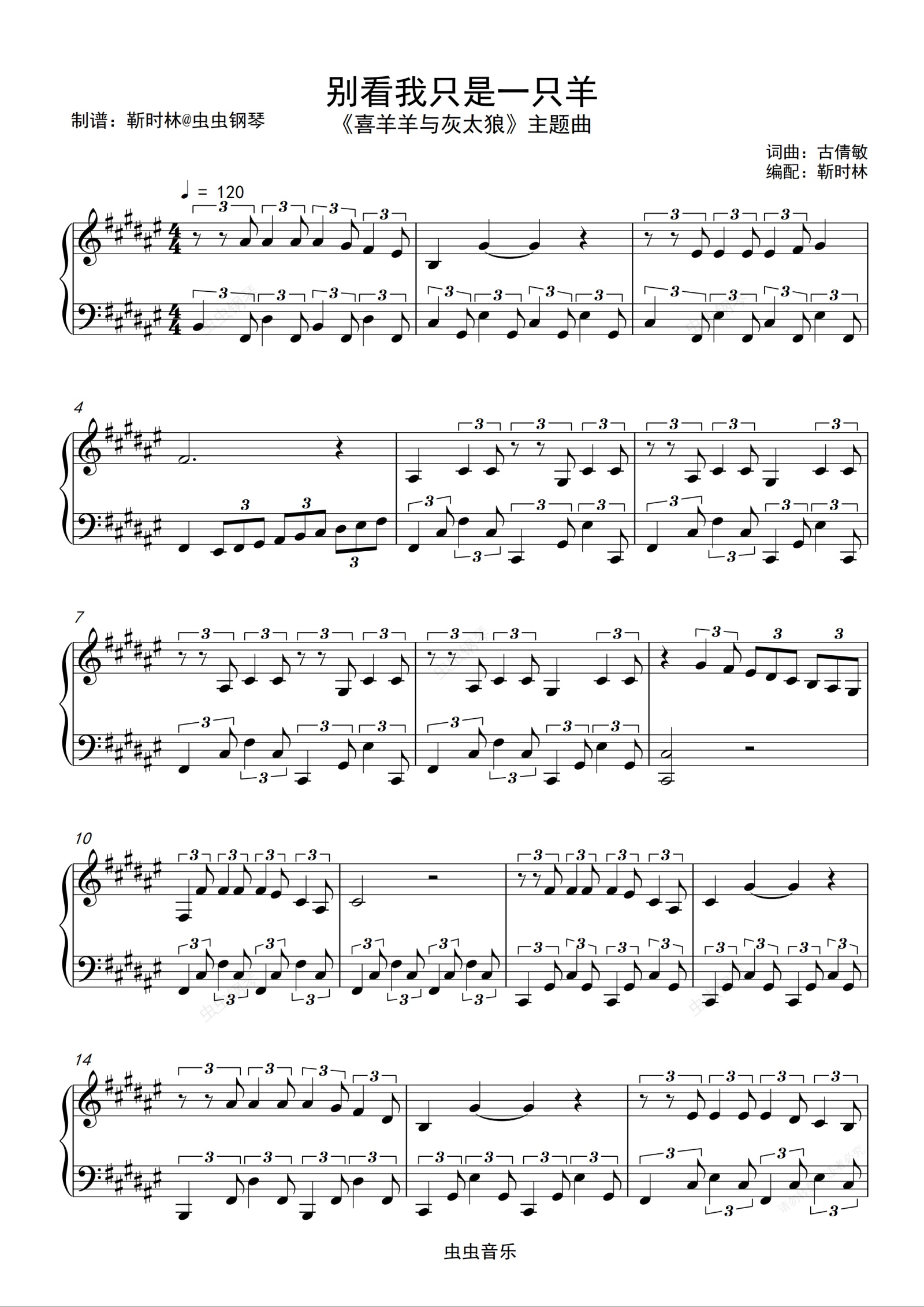 钢琴谱:《别看我只是一只羊》(《喜羊羊与灰太狼》主题曲)原调钢琴