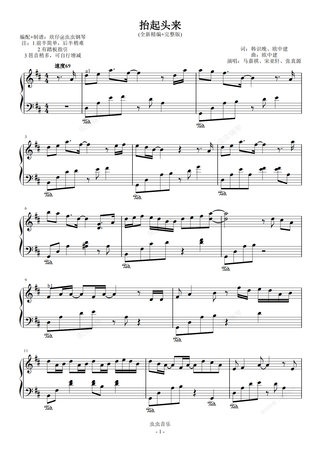 钢琴谱:D《抬起头来》(马嘉祺、宋亚轩、张真源、全新精编+完整版)