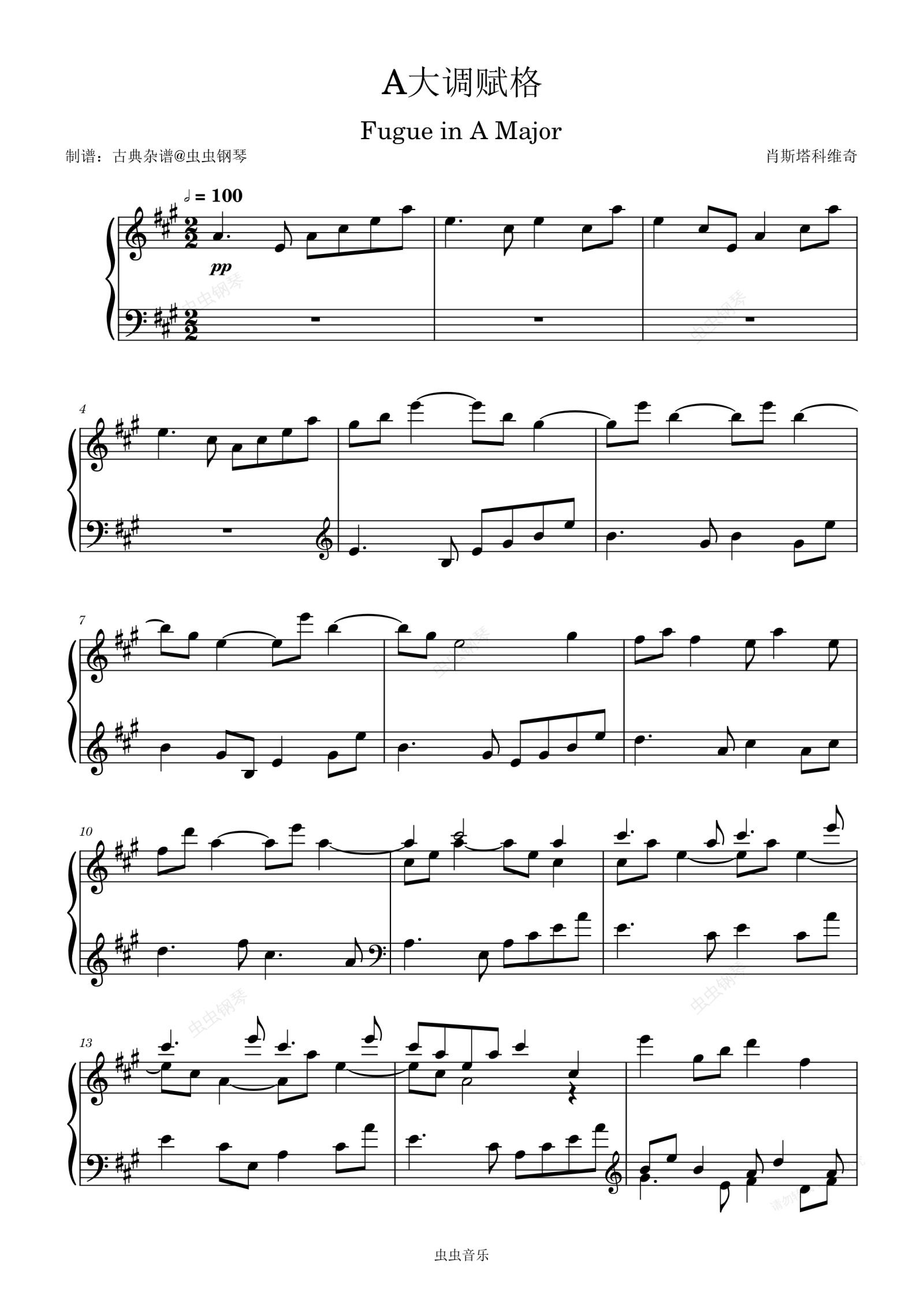 钢琴谱:A大调赋格 肖斯塔科维奇