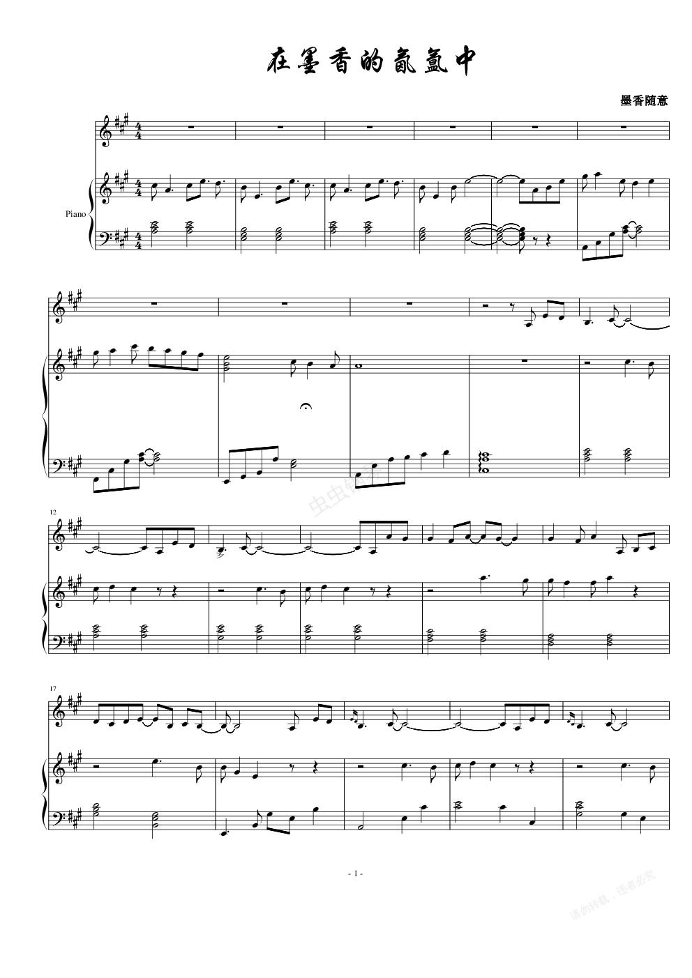 钢琴谱:在墨香的氤氲中