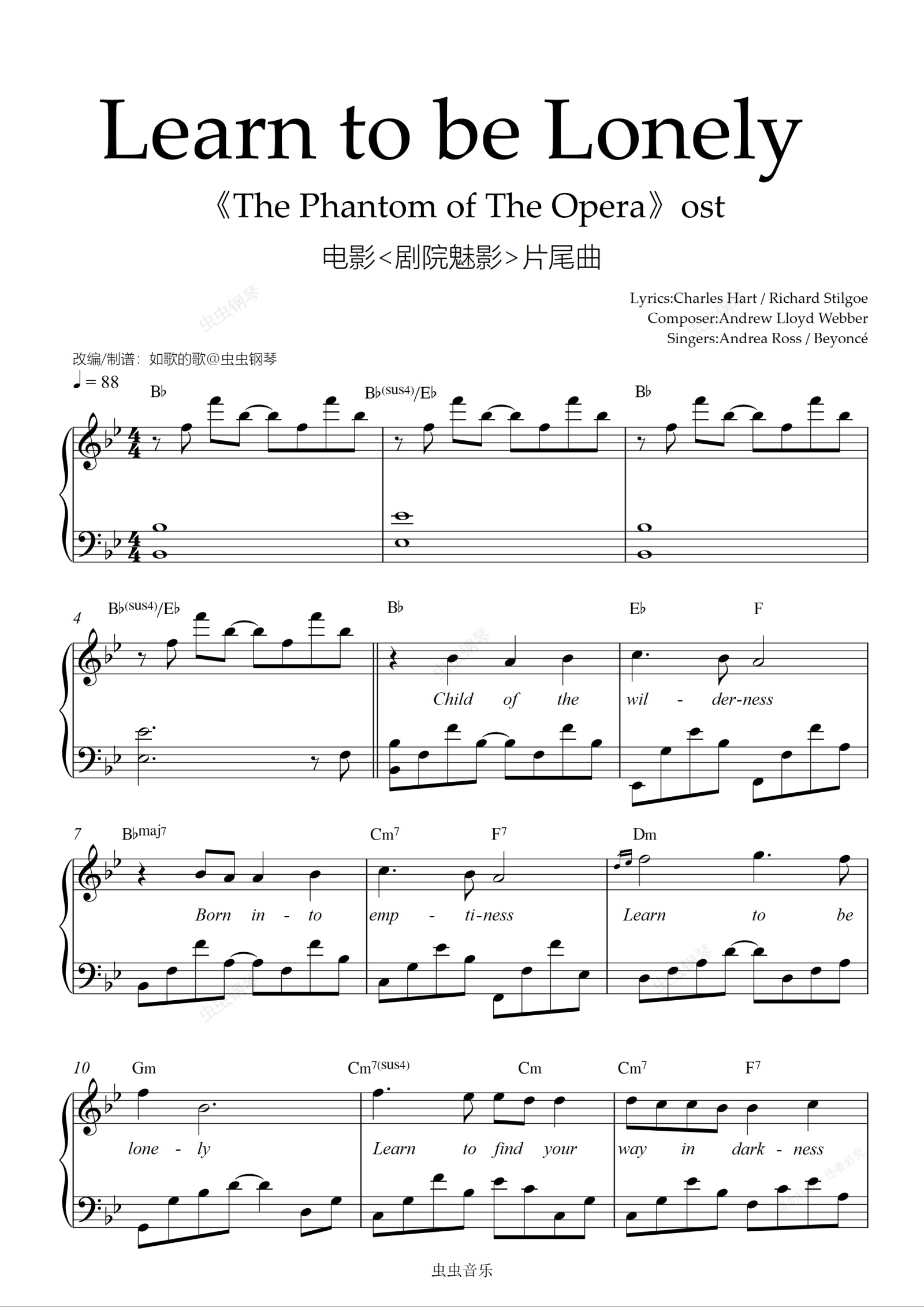 钢琴谱:Learn to be Lonely<歌剧魅影>片尾曲可弹唱