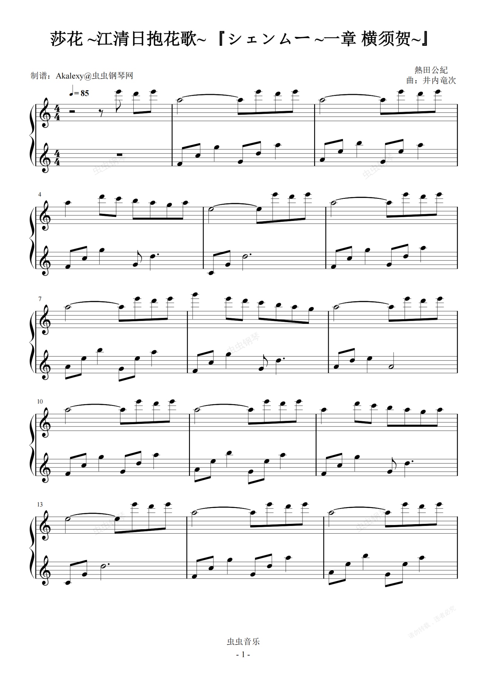 钢琴谱:【莎木】莎花 ~江清日抱花歌~