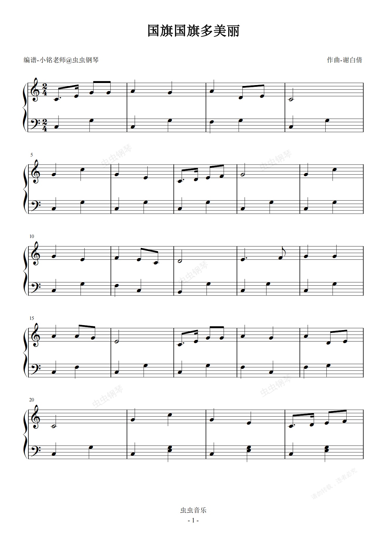 钢琴谱:国旗国旗多美丽【快乐学儿歌小汤3】