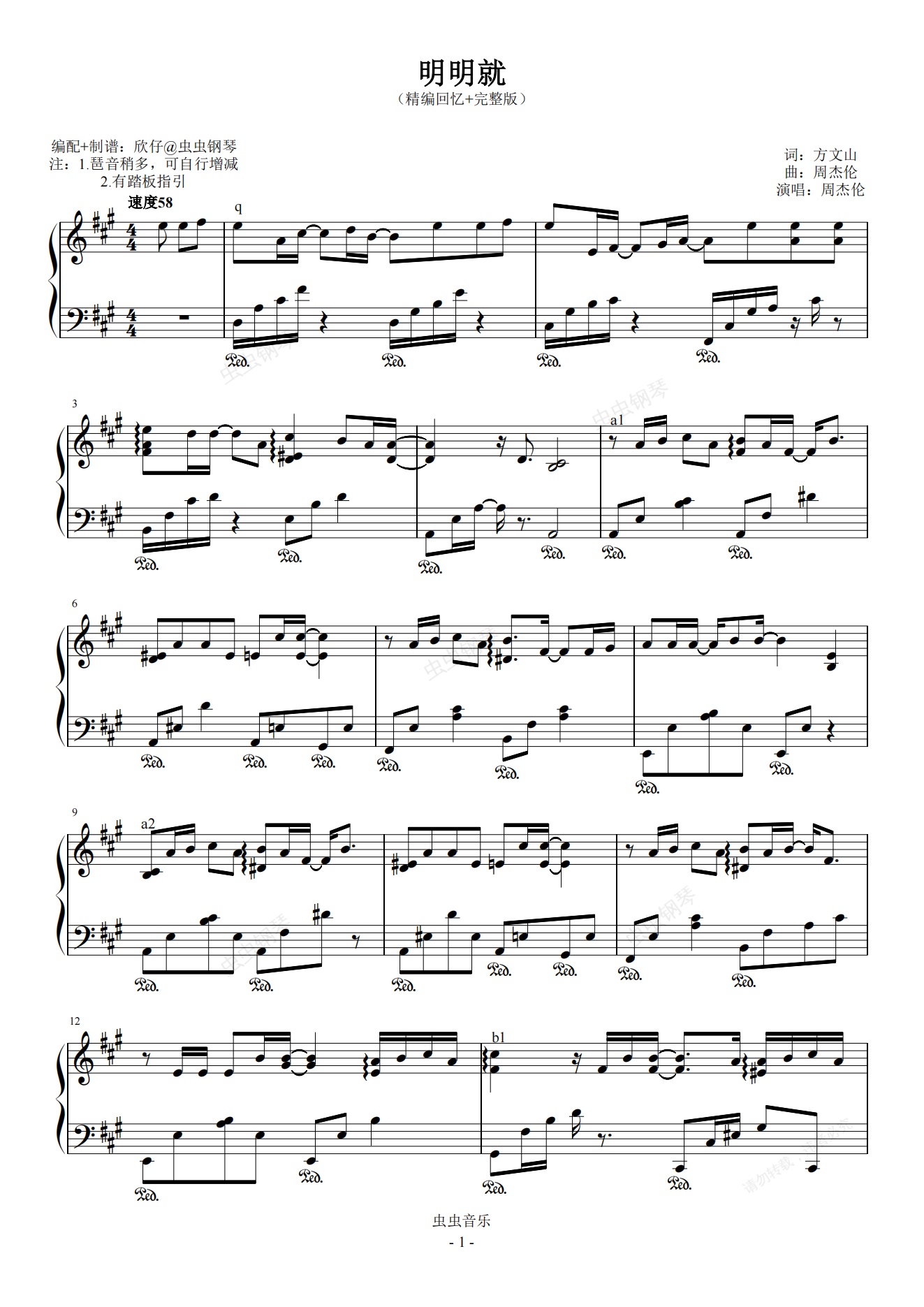 钢琴谱:周杰伦-A《明明就》(精编回忆+完整版)