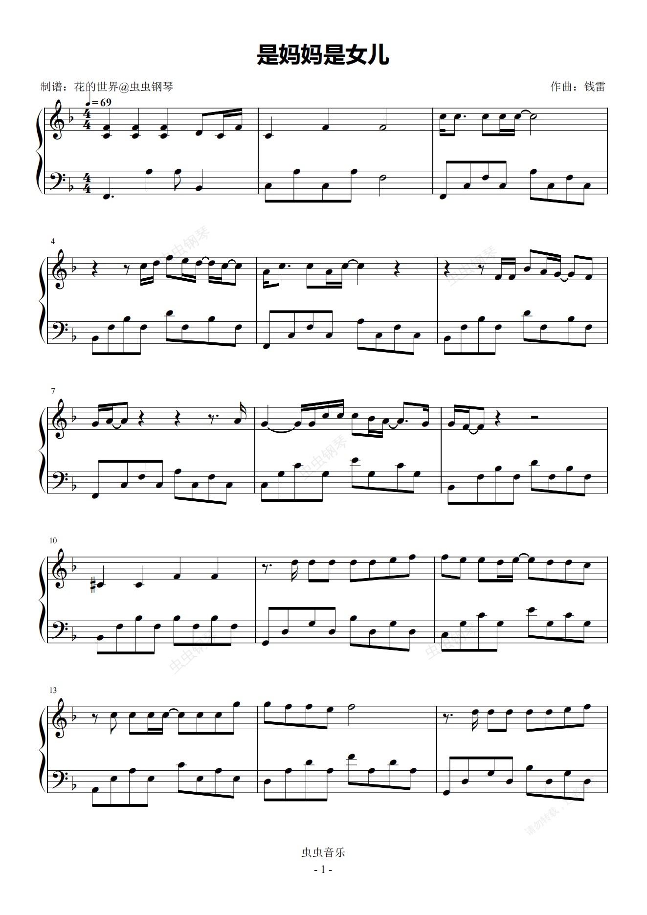 钢琴谱:是妈妈是女儿 原调简易版 黄绮珊 /希林娜依高 春晚歌曲