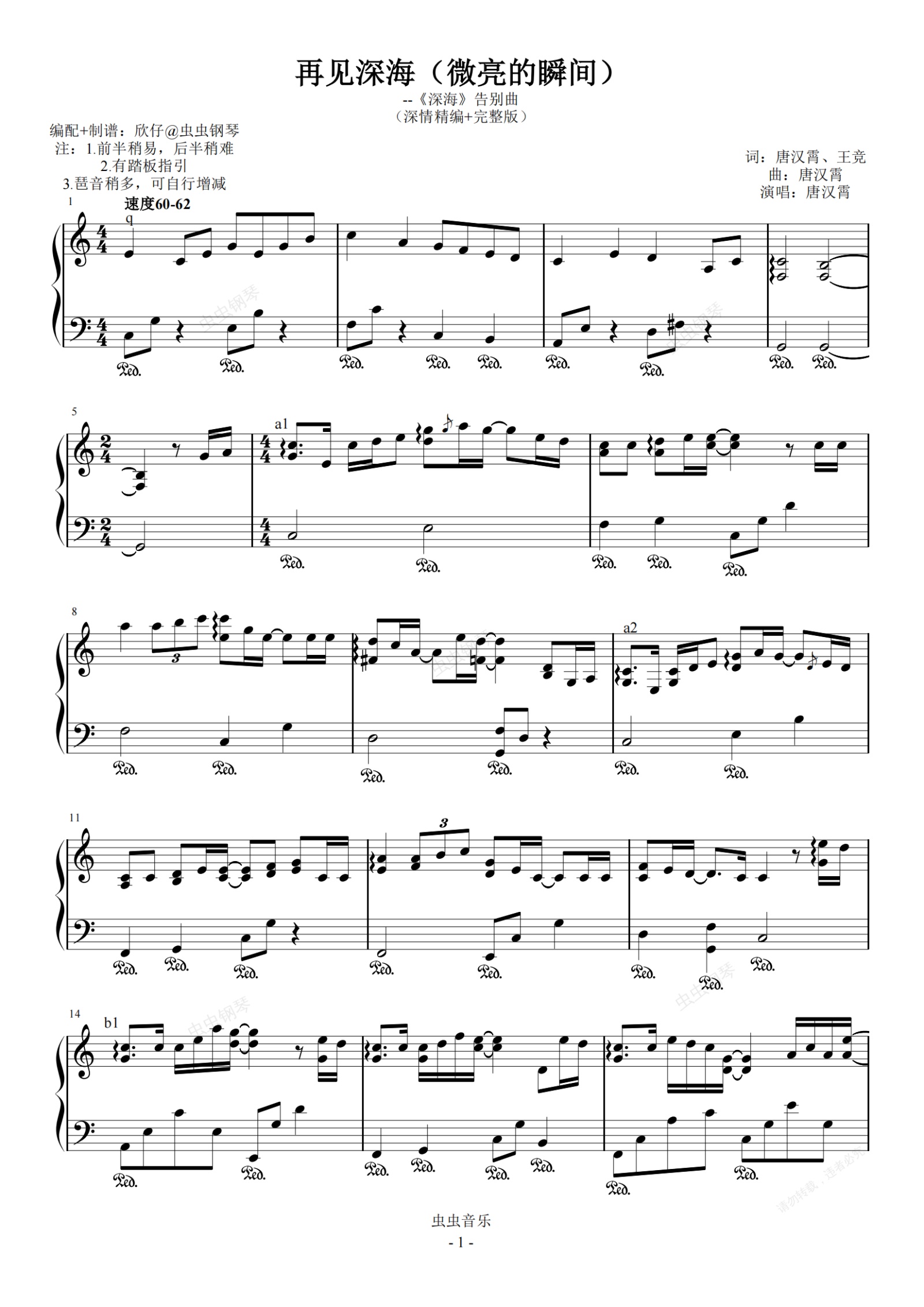 钢琴谱:唐汉霄-C《再见深海》(《深海》告别曲、深情完整版)