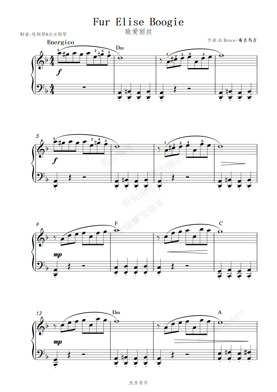 钢琴谱:跳动的致爱丽丝//Fur Elise Boogie