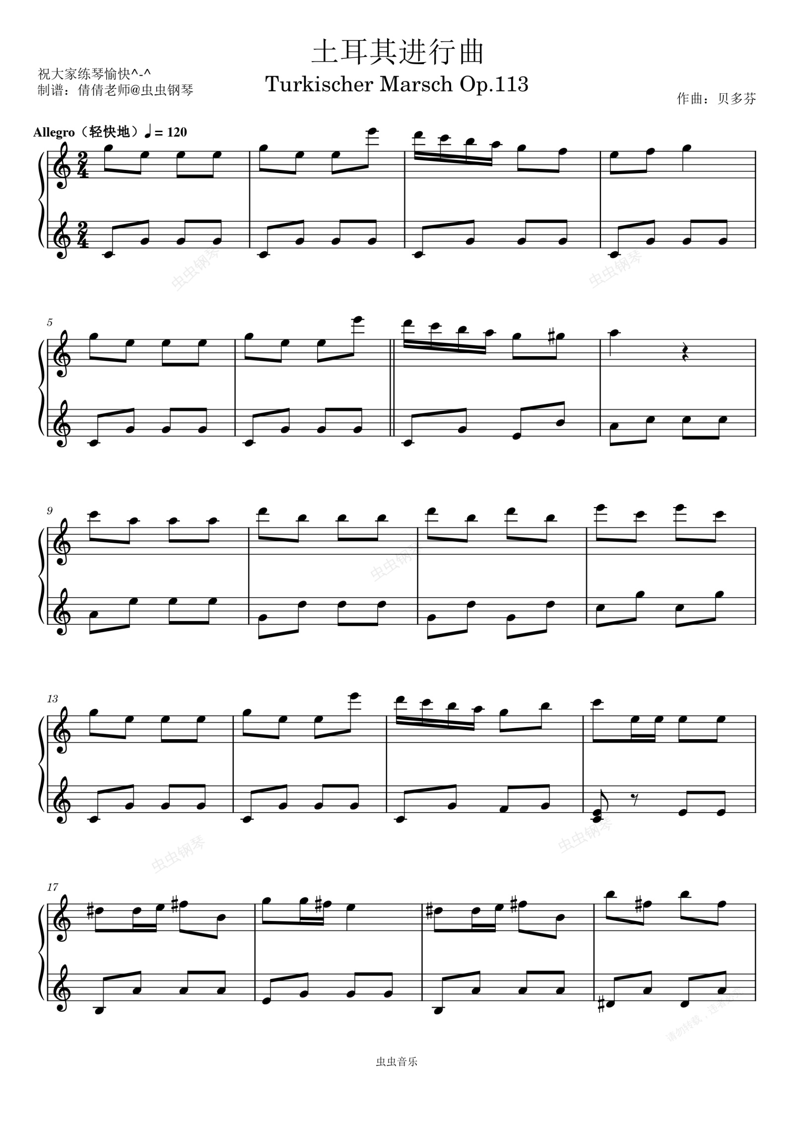 钢琴谱:土耳其进行曲-贝多芬-简易版