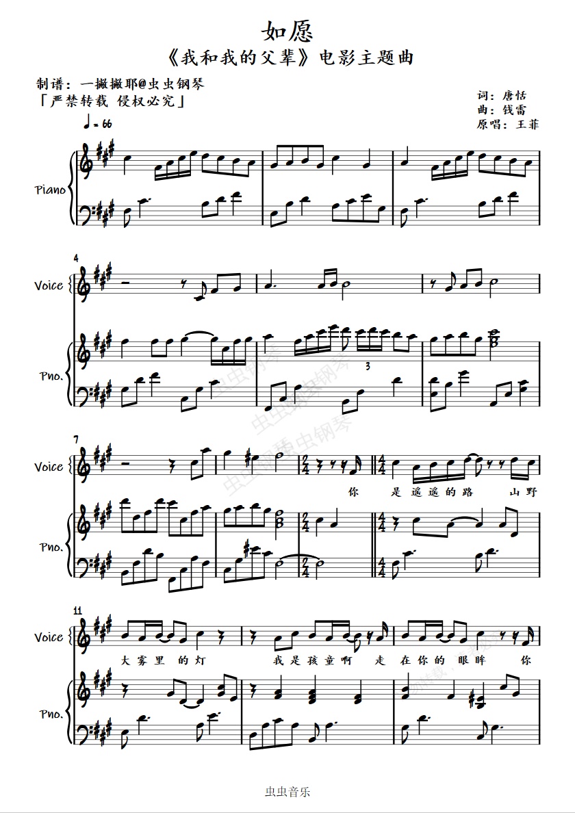 钢琴谱:极限还原弹唱《如愿》王菲|电影《我和我的父辈》推广曲「一撇撇耶」