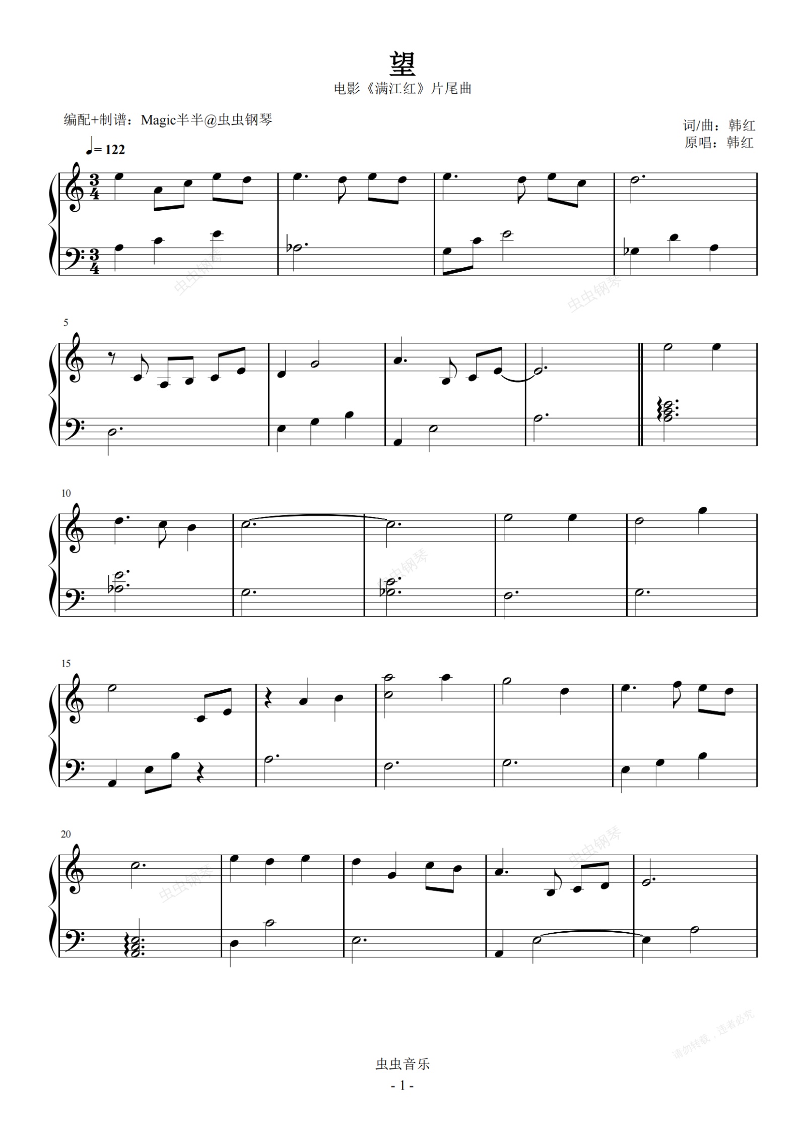 钢琴谱:望 韩红(实用完整版)电影《满江红》片尾曲
