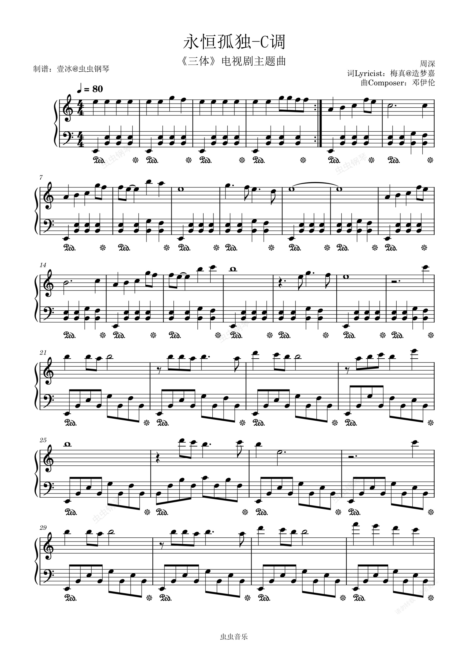 钢琴谱:永恒孤独//《三体》电视剧主题曲-C调