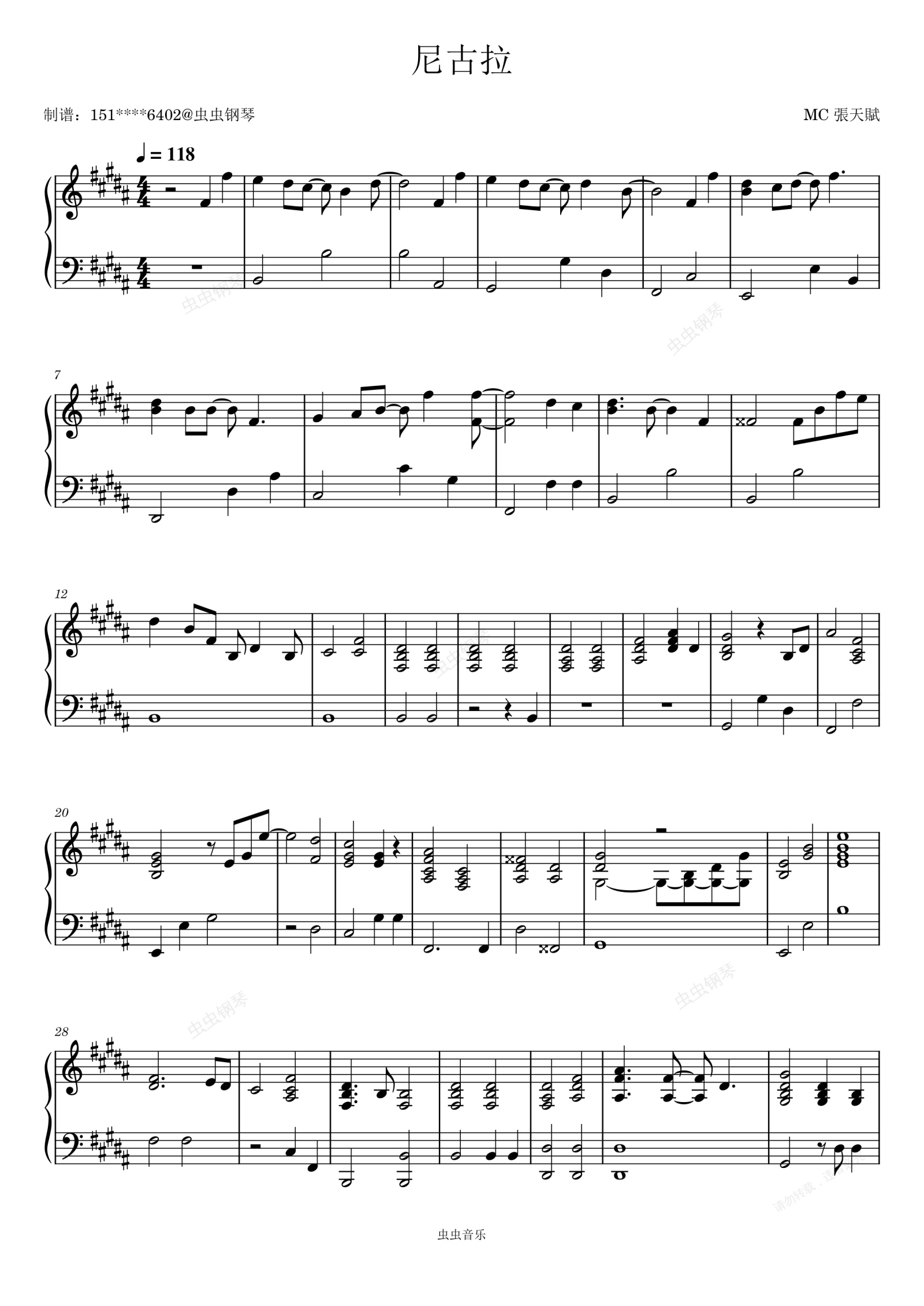 钢琴谱:《尼古拉》- Covered by MC 張天賦 原调钢琴伴奏