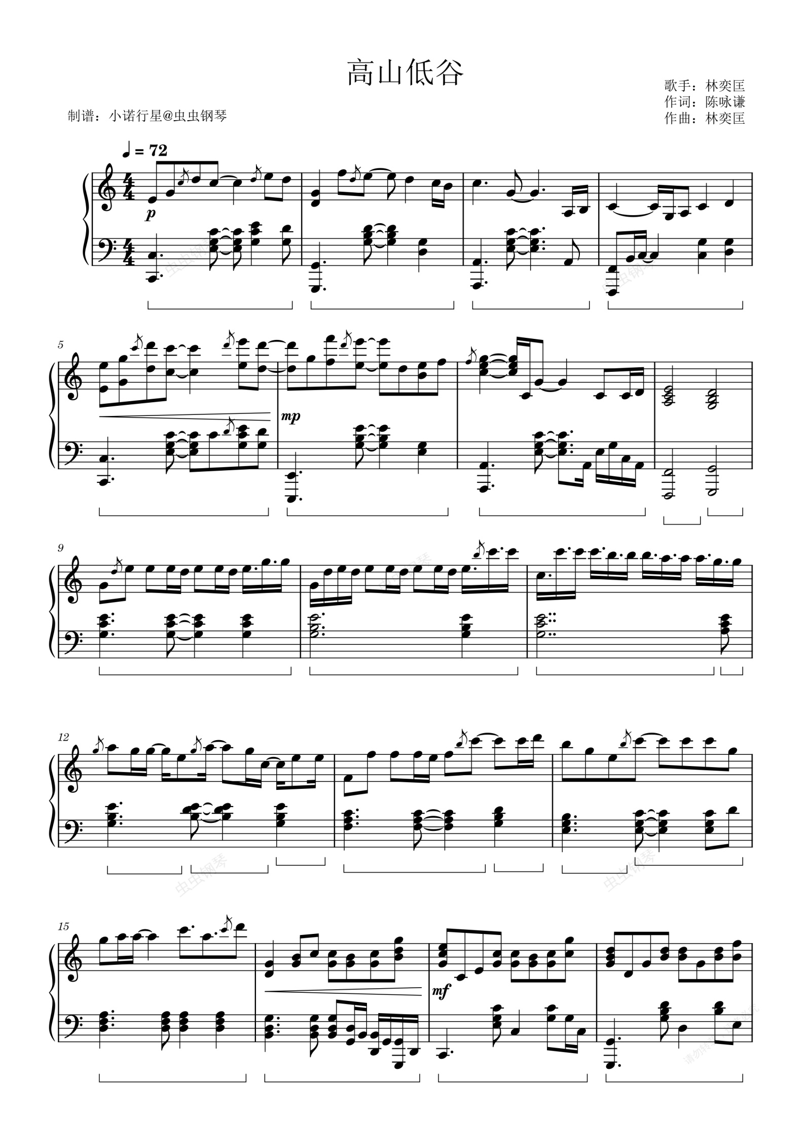 钢琴谱:高山低谷-高度还原 钢琴独奏