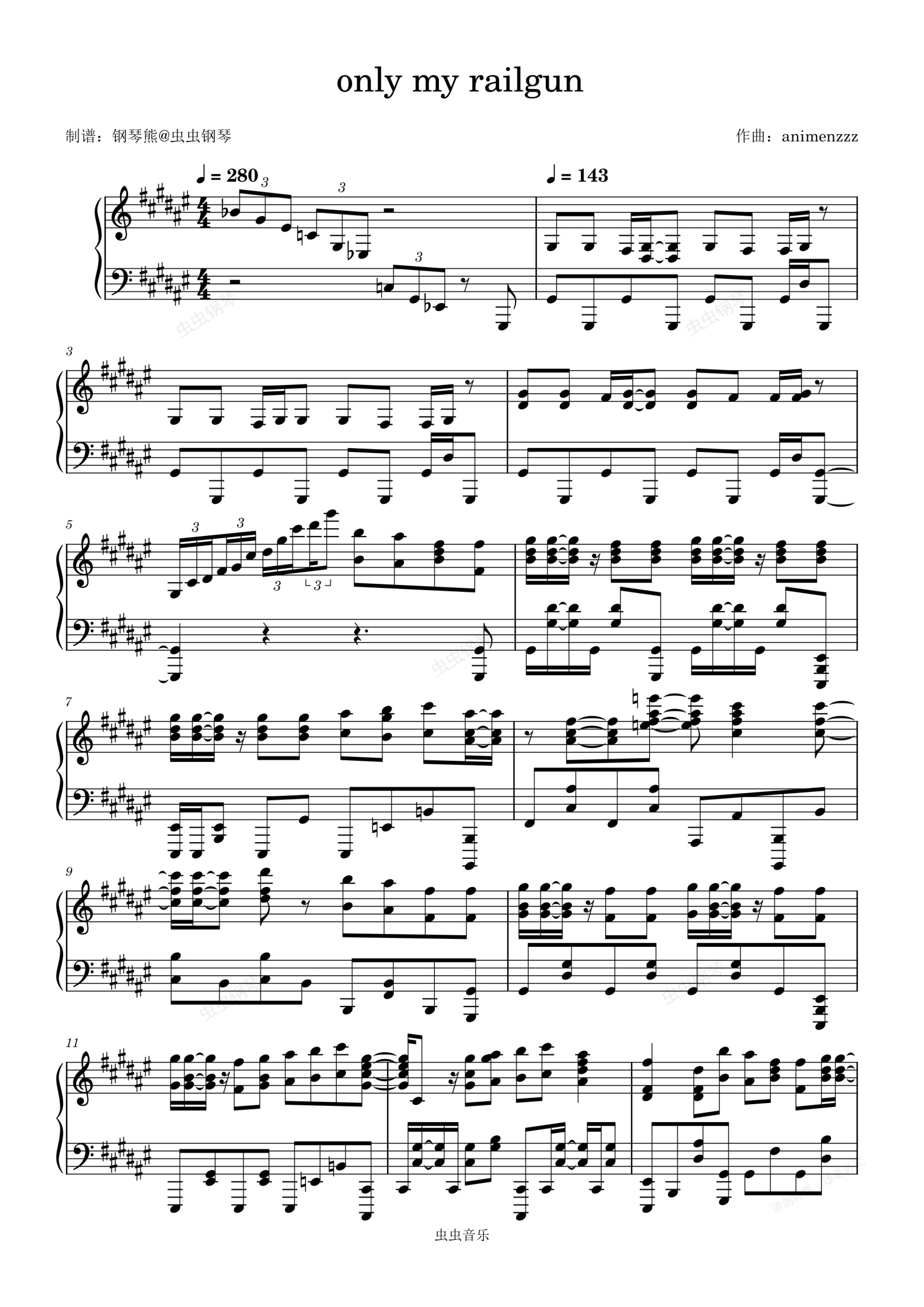 钢琴谱:A叔200首《only my railgun》回复日更!喜欢的下兄弟记得点❤❤❤↓↓↓