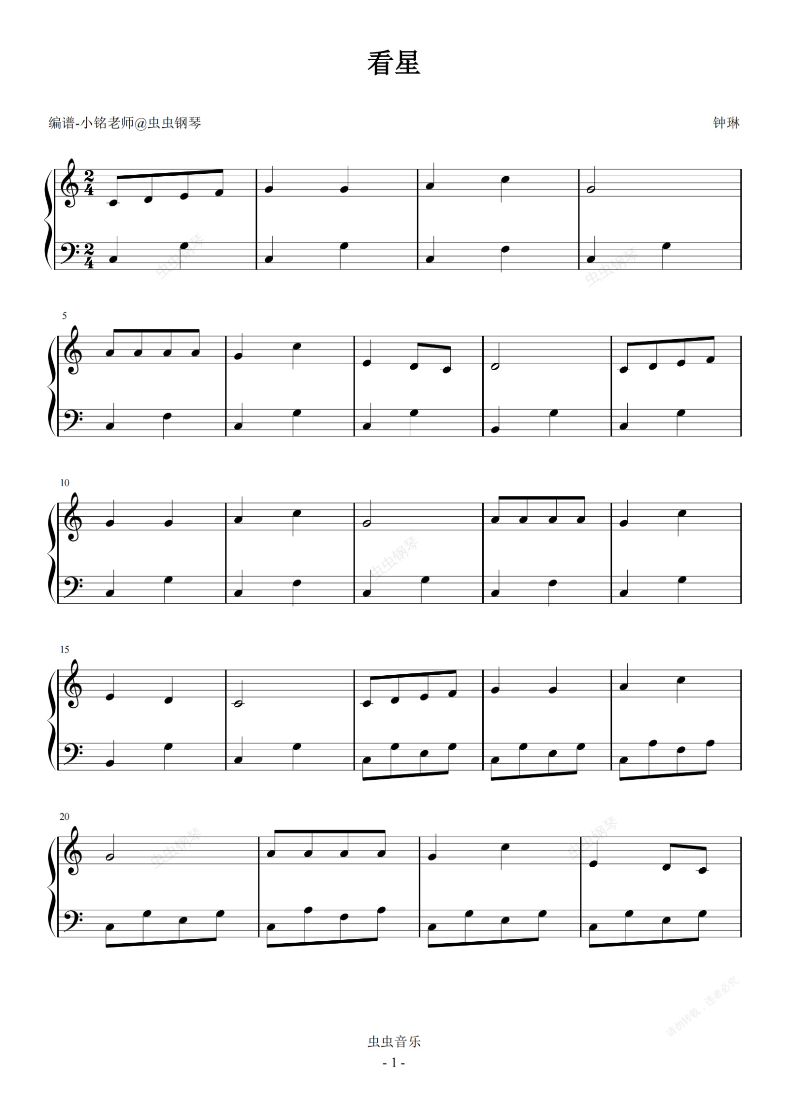 钢琴谱:看星【快乐学儿歌 小汤2】