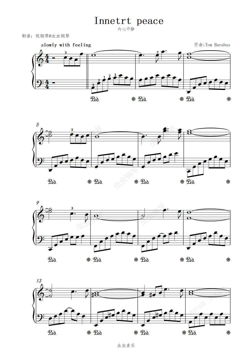 钢琴谱:内心平静//Inner peace【治愈-唯美-超好听】