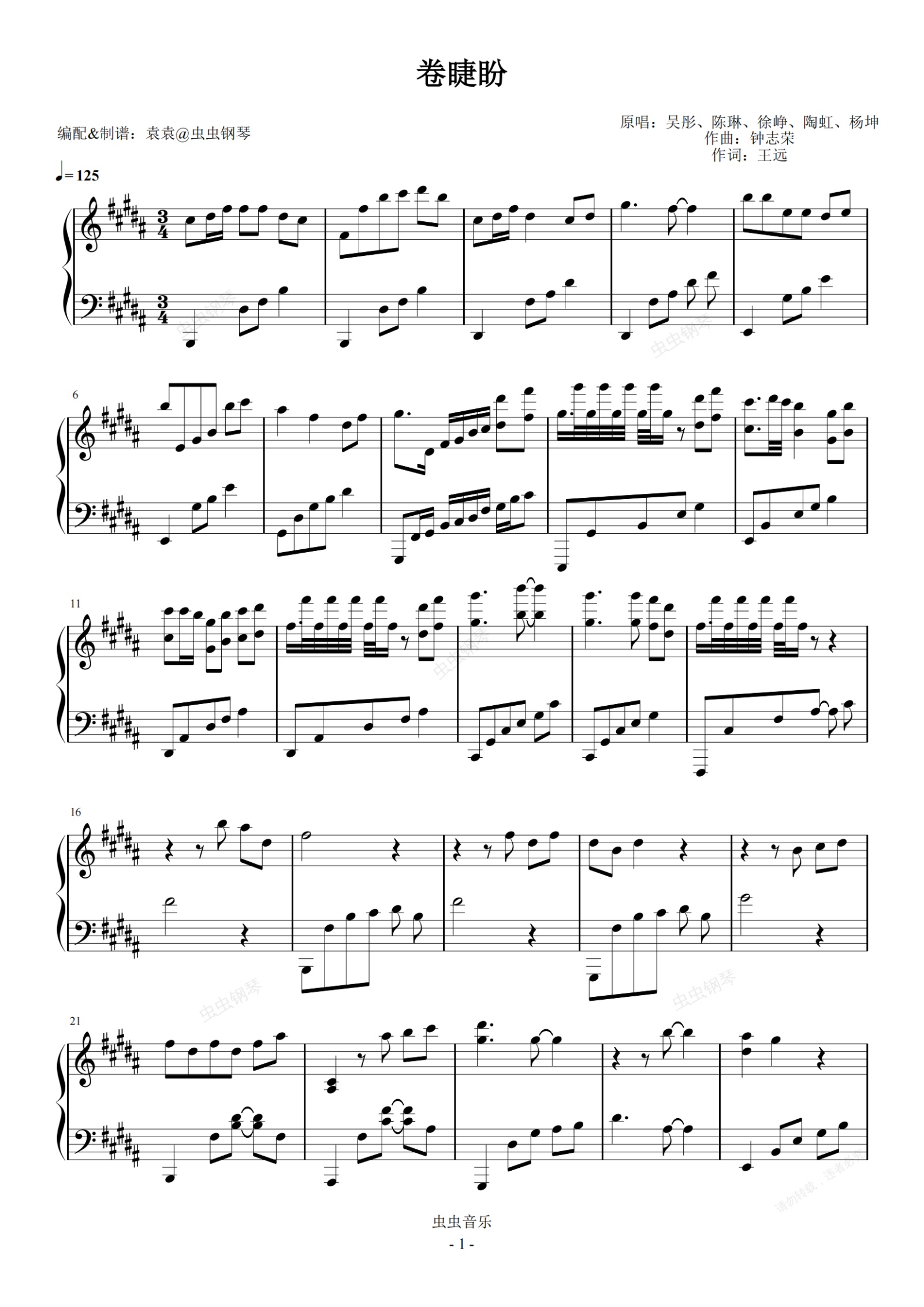 钢琴谱:卷睫盼 春光灿烂猪八戒主题曲 完整演奏版 原调