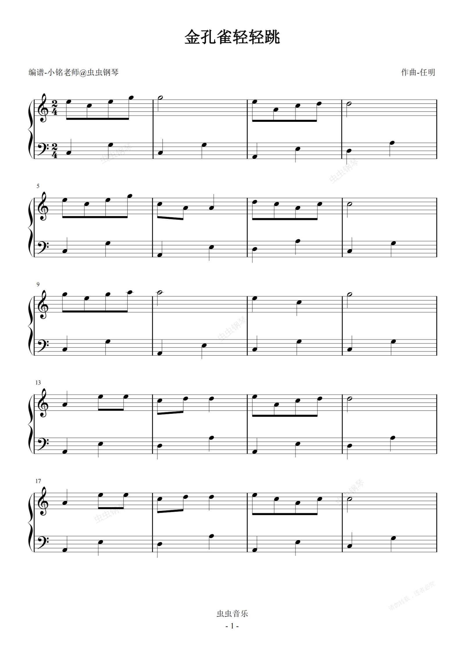 钢琴谱:金孔雀轻轻跳【快乐学儿歌】