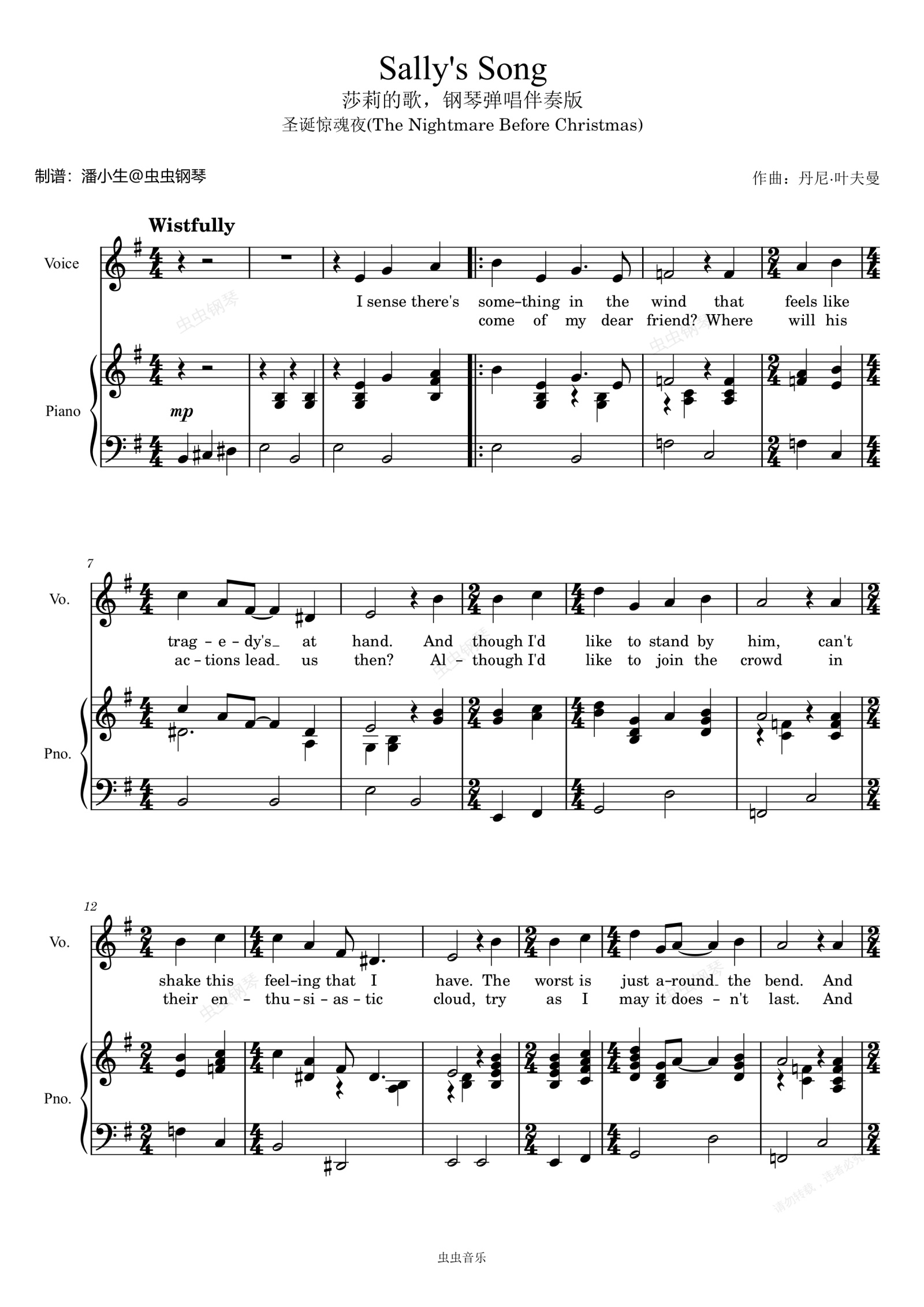 钢琴谱:Sally's Song,莎莉的歌,钢琴弹唱伴奏版,圣诞惊魂夜(The Nightmare Before Christmas)