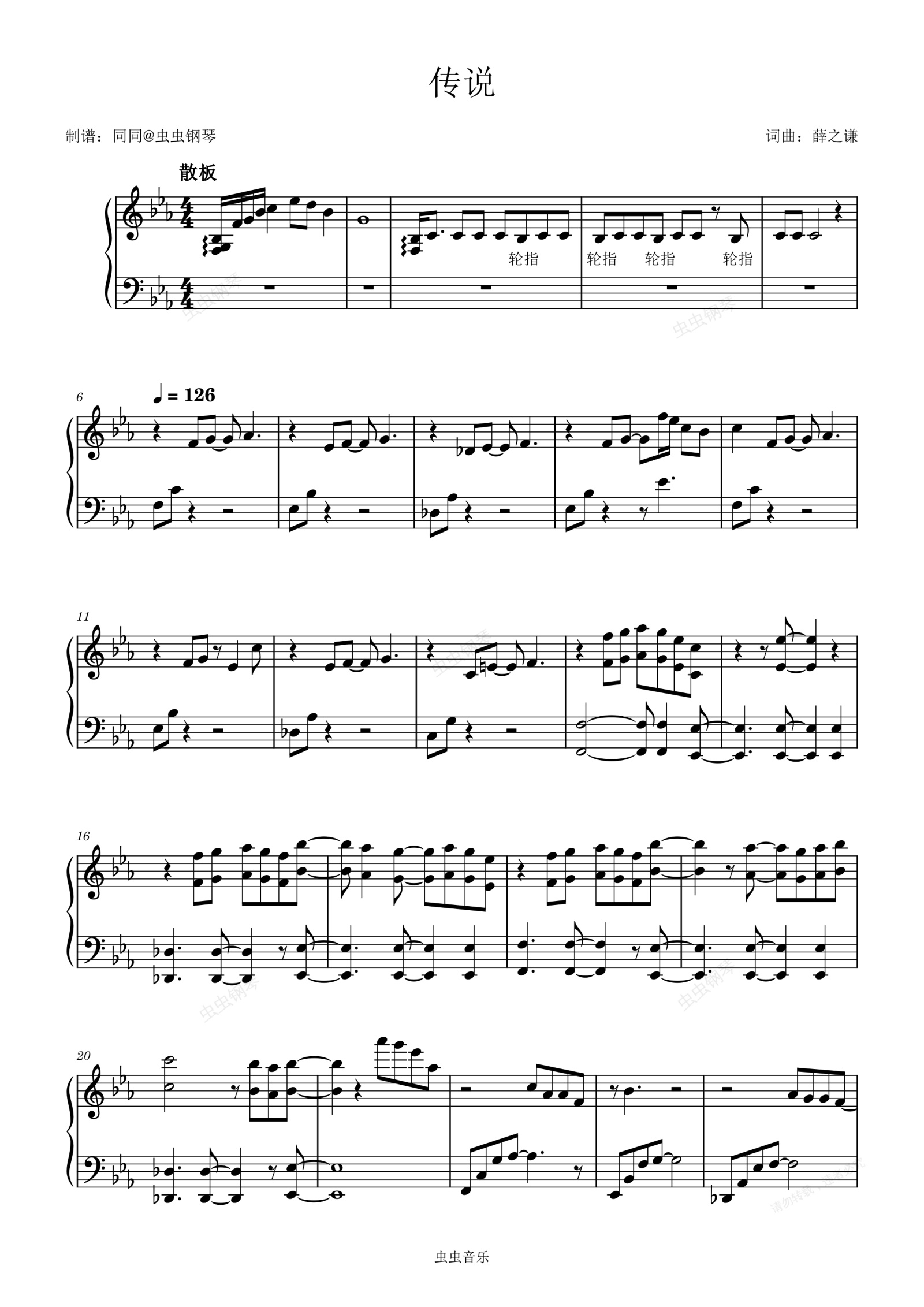 钢琴谱:传说薛之谦钢琴独奏