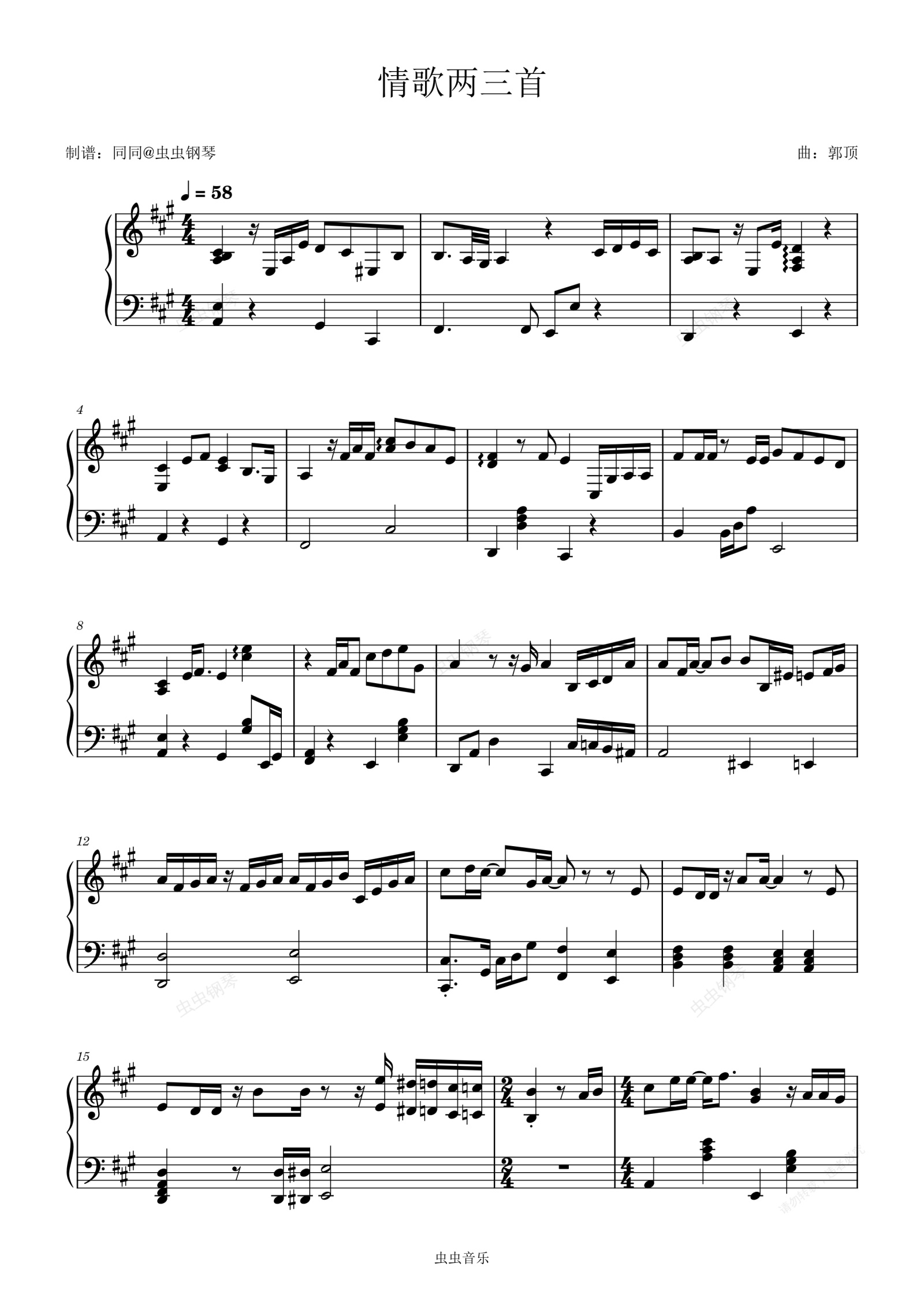 钢琴谱:情歌两三首郭顶钢琴独奏谱
